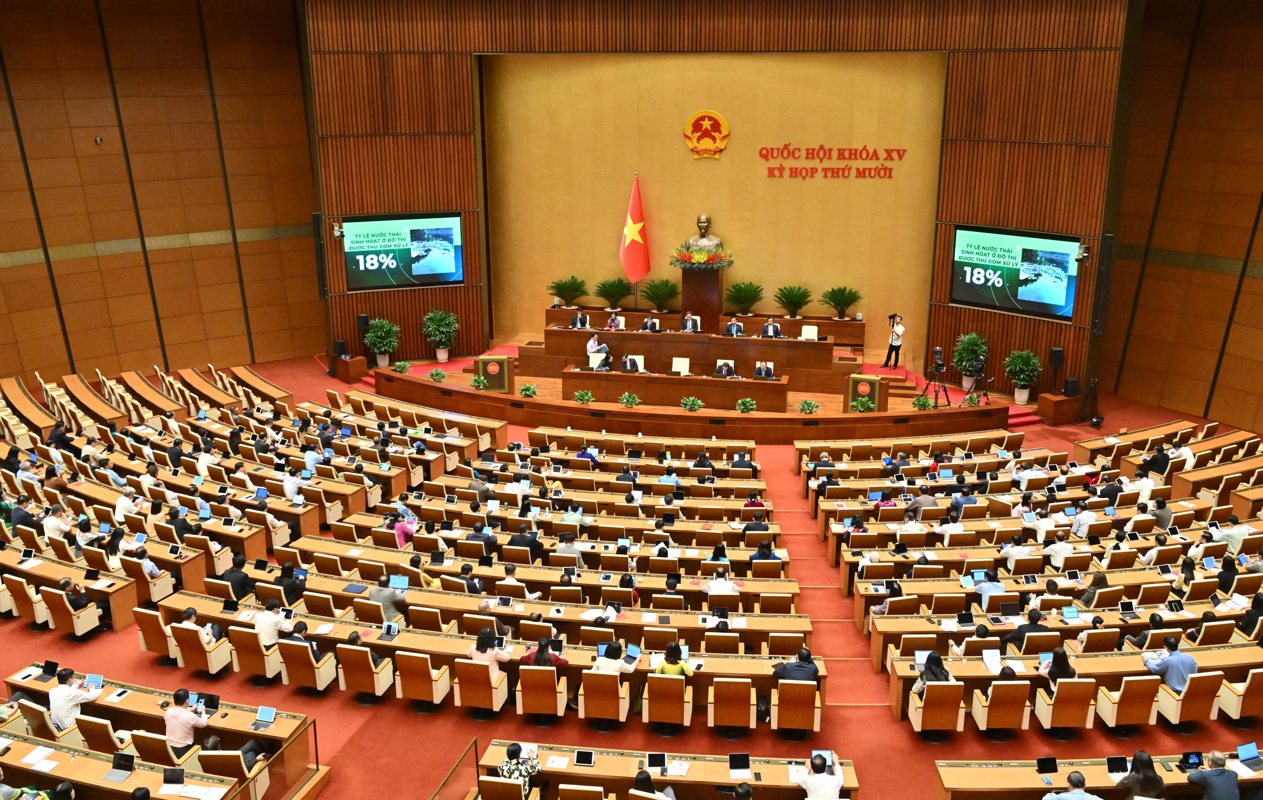 Därefter tittade nationalförsamlingen på ett videoklipp om resultaten av genomförandet av policyer och lagar om miljöskydd sedan miljöskyddslagen 2020 trädde i kraft.