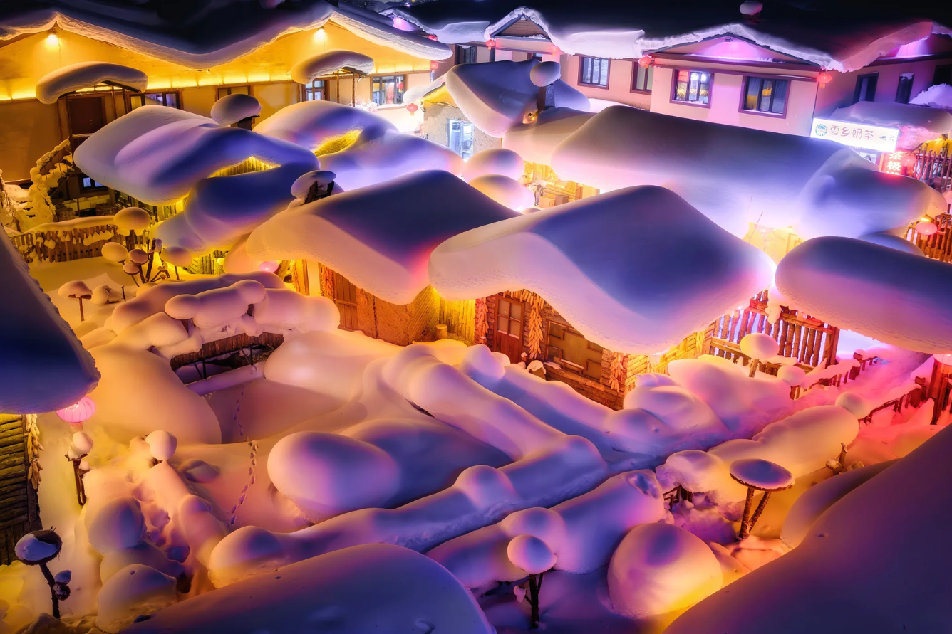 Om du någonsin har velat se gamla byar, täckta av vit snö som i sagor, då är sagobyn Tuyet Huong turistmålet i Harbin som du måste besöka.