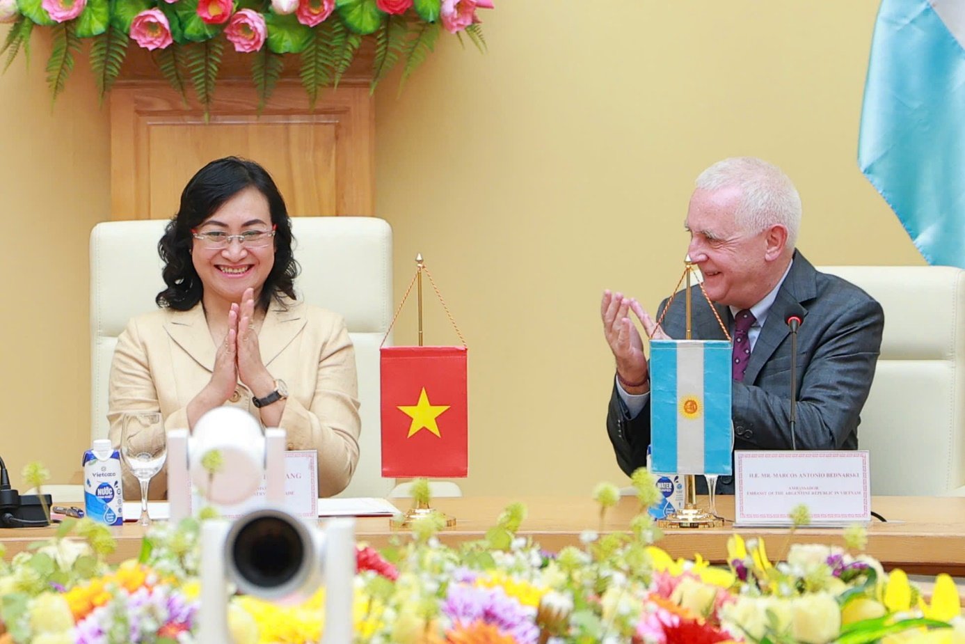 Mötet leddes gemensamt av biträdande minister Phan Thi Thang och ambassadör Fernando Brun, statssekreterare för internationella ekonomiska relationer vid Argentinas utrikesministerium , utrikeshandel och religiösa frågor.