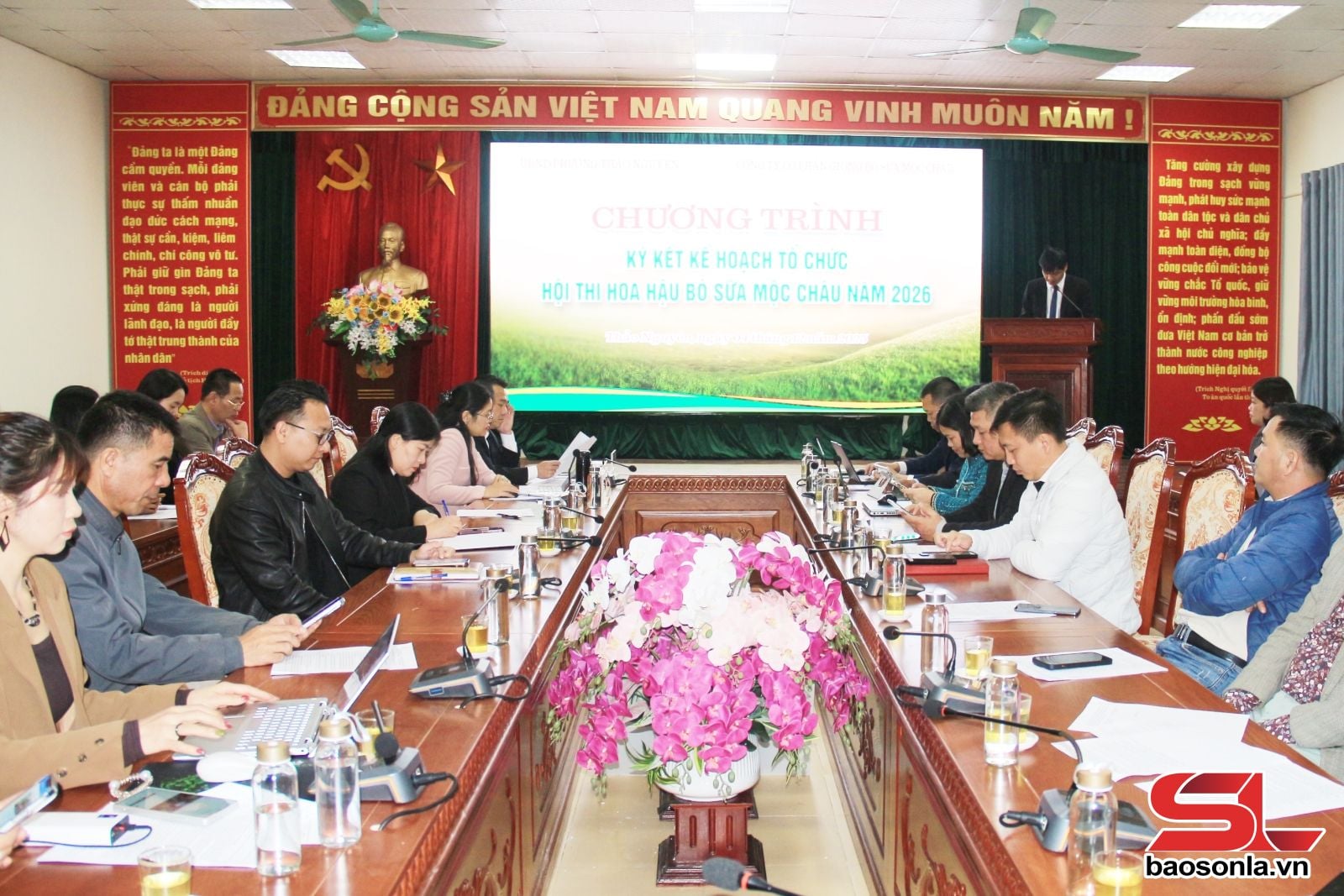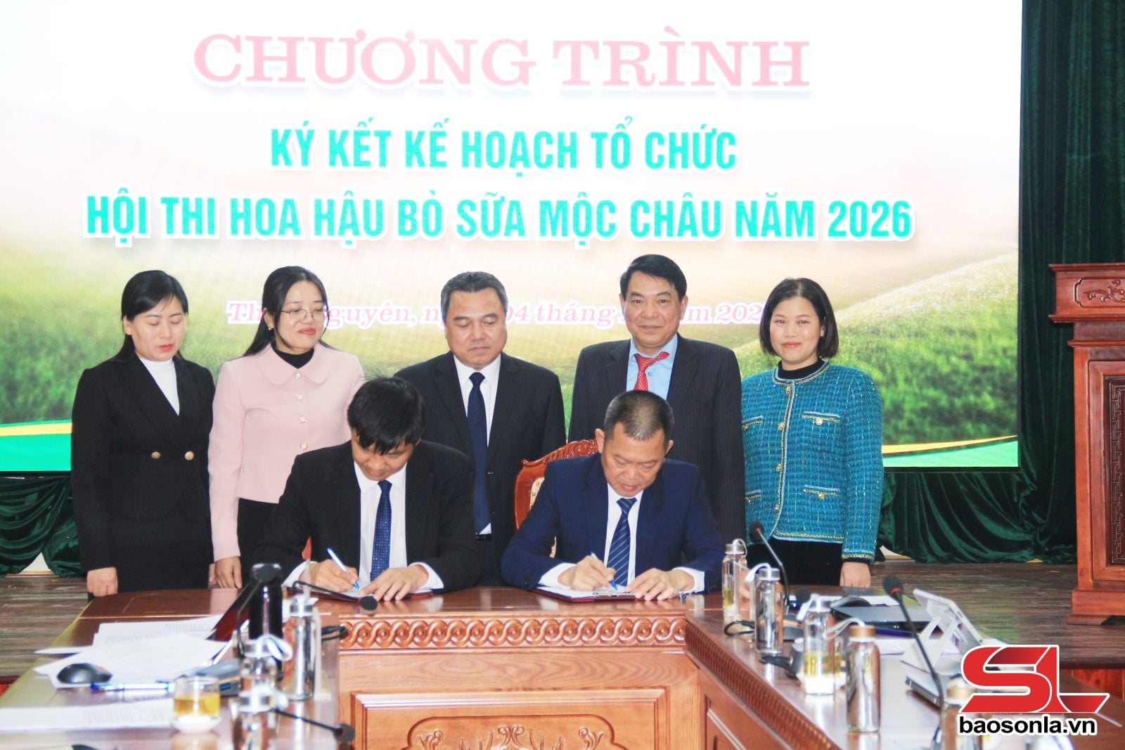 De två sidorna enades om att underteckna en plan för att gemensamt organisera Moc Chau Dairy Cow Beauty Contest 2026, inklusive tävlingens huvudsakliga innehåll, aktiviteter och sidoaktiviteter.