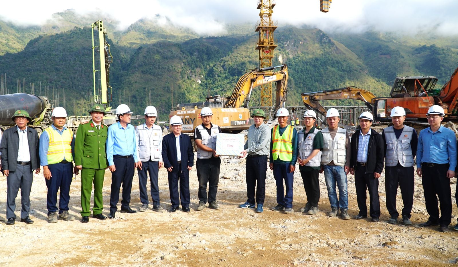 Vid detta tillfälle överlämnade ordföranden för den provinsiella folkkommittén och delegationen gåvor för att uppmuntra arbetarna som för närvarande arbetar på byggarbetsplatsen.