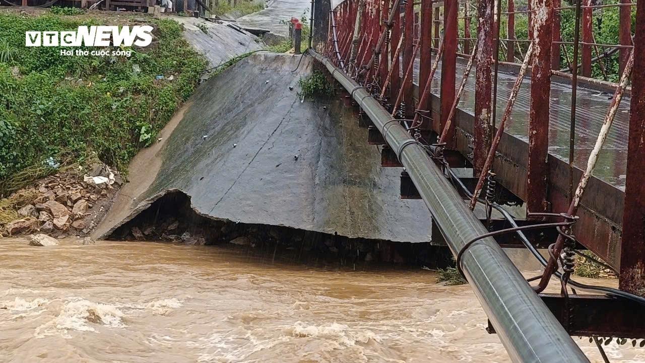 Kraftigt regn skadade hängbron till Ong Dung-taket (Tra Giap kommun, Da Nang stad) och riskerade att svepas med av översvämningen.