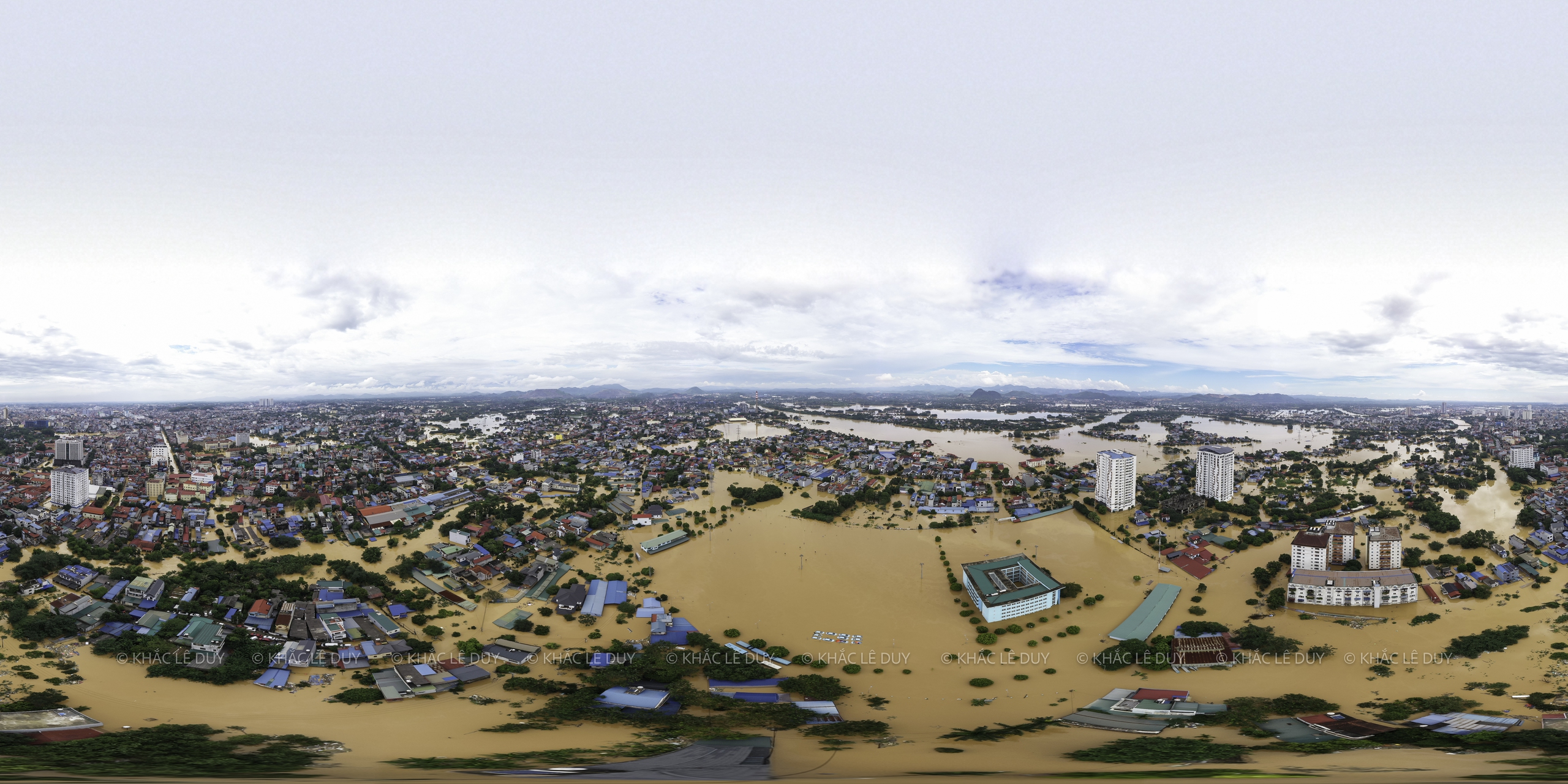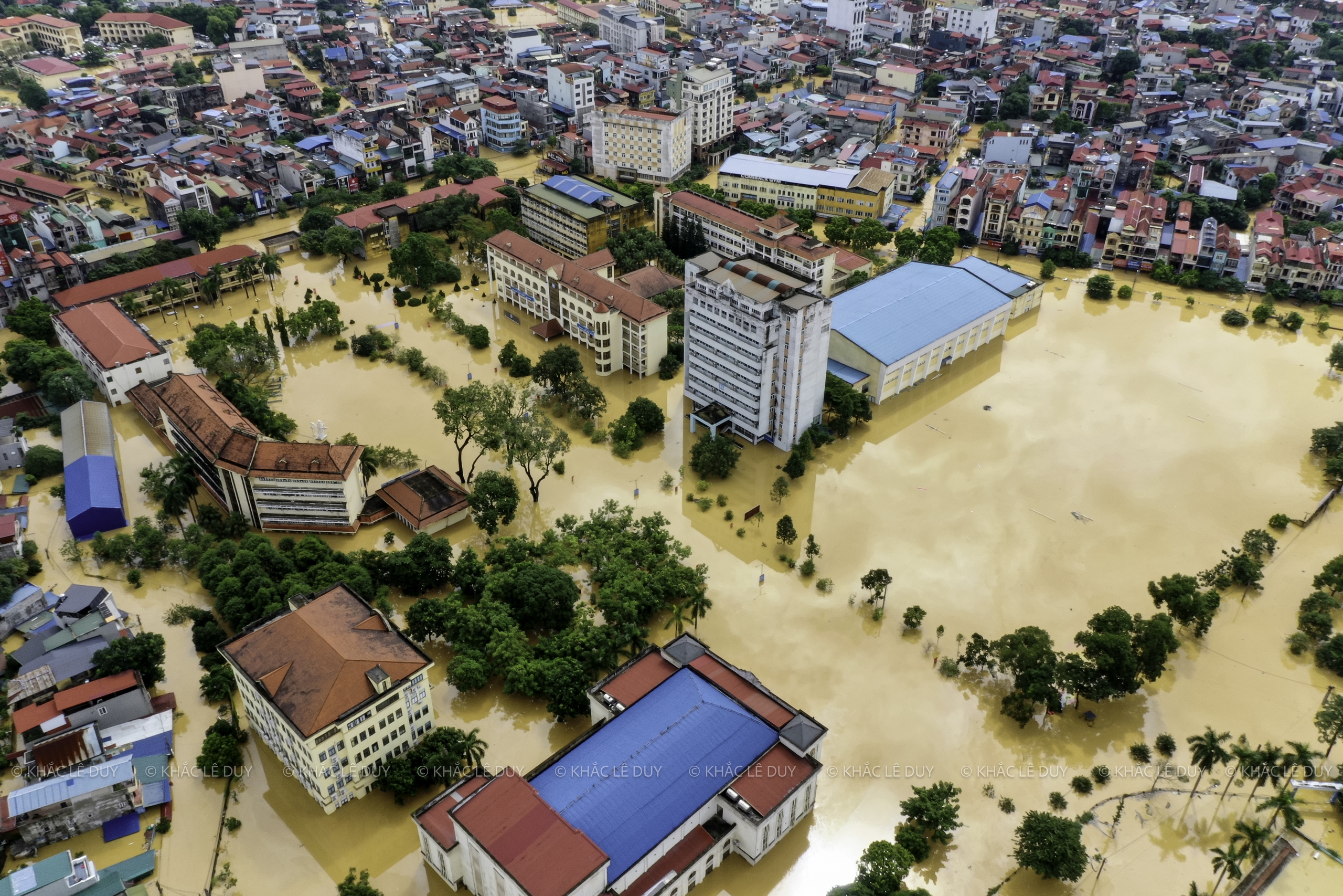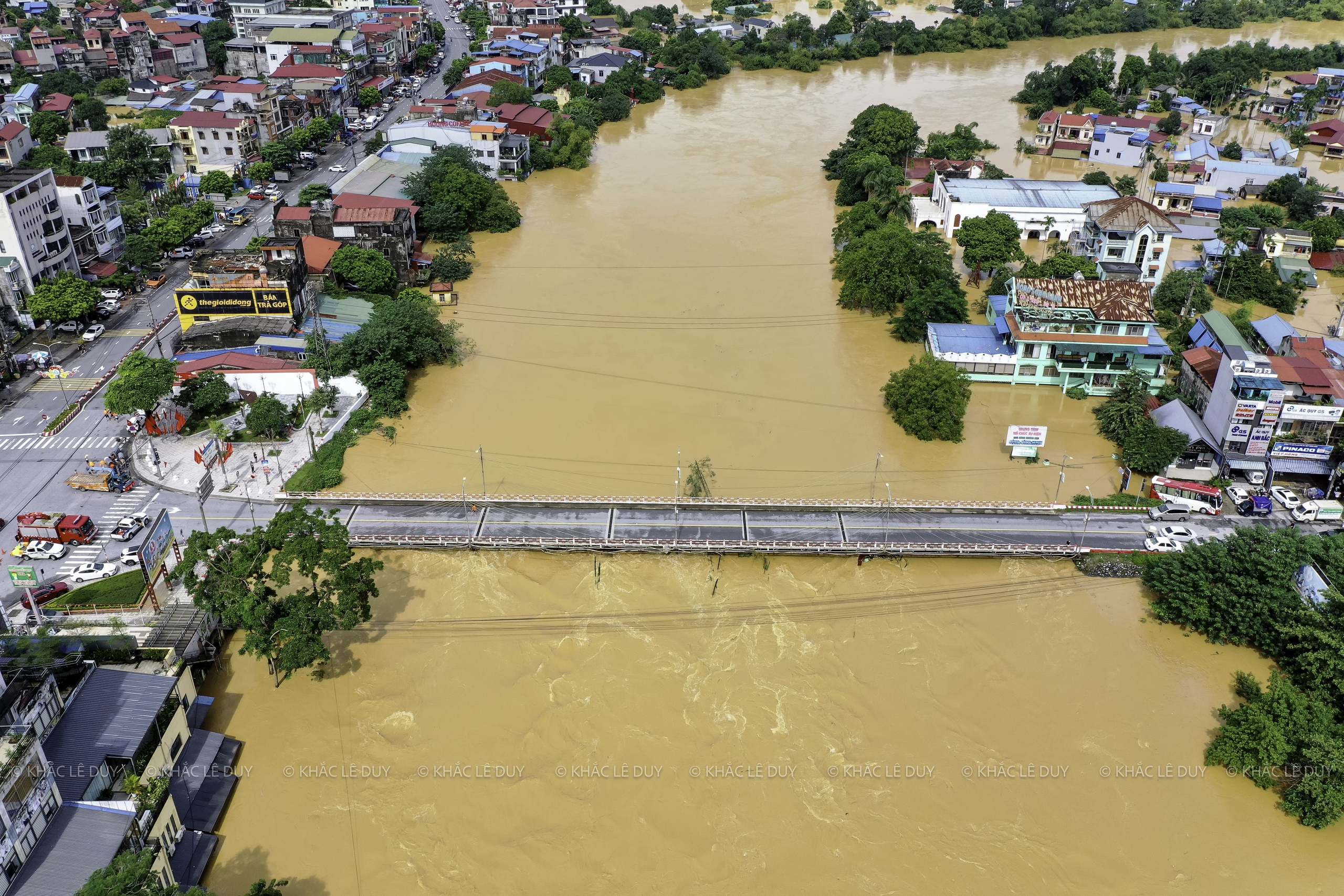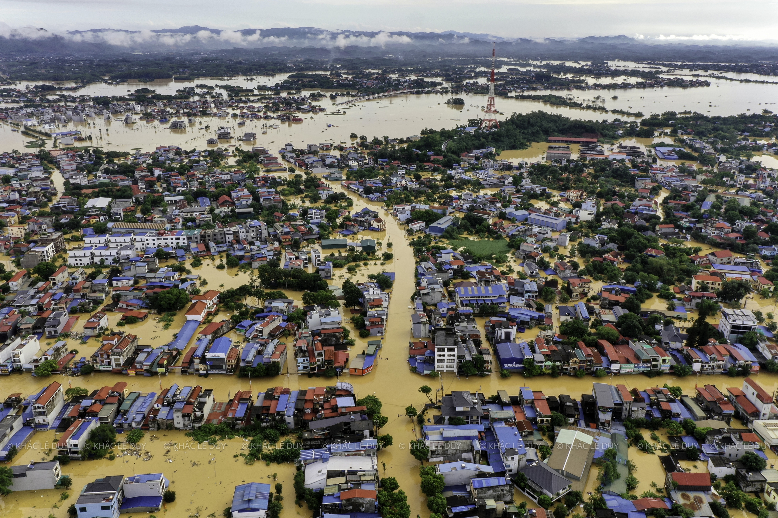 Vid middagstid den 8 oktober utnyttjade herr Le Duy Khac (38 år gammal, i Phan Dinh Phung-distriktet) regnet för att med hjälp av en flycam ta bilder av några platser i Thai Nguyen som var djupt översvämmade av den historiska översvämningen: Gia Sang-distriktet, Phan Dinh Phung, Gia Bay-bron, Ben Oanh-bron, Huong-bron, området med runda öar i centrum av den gamla staden Thai Nguyen, den nord-sydliga tunneln, Quan Trieu-distriktet (gamla Quang Vinh-distriktet), Thai Nguyen University of Education...