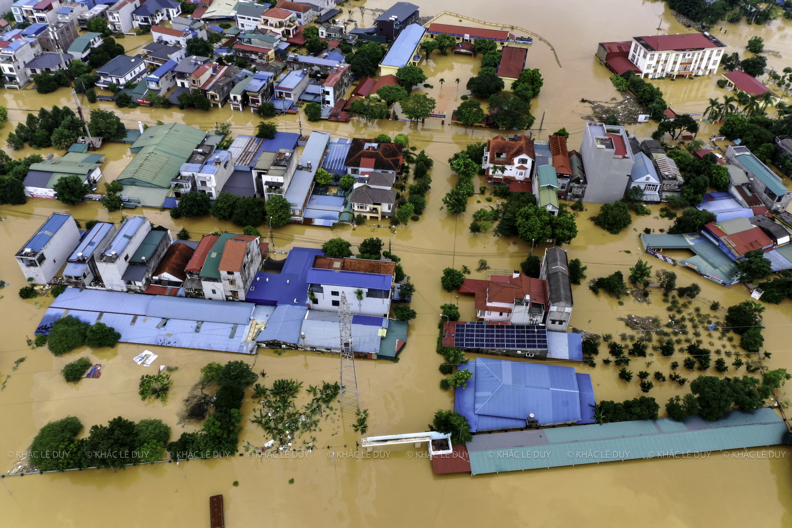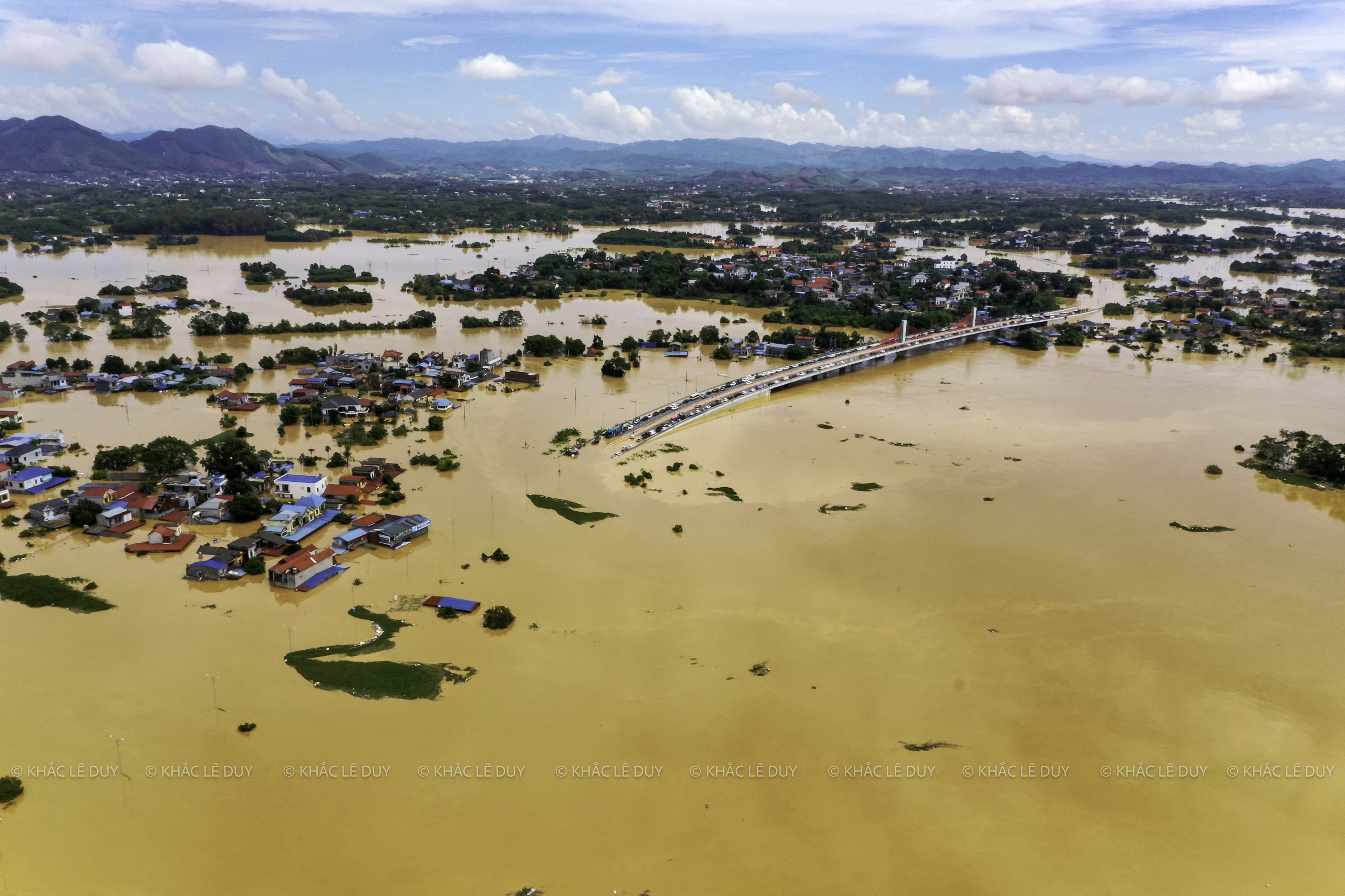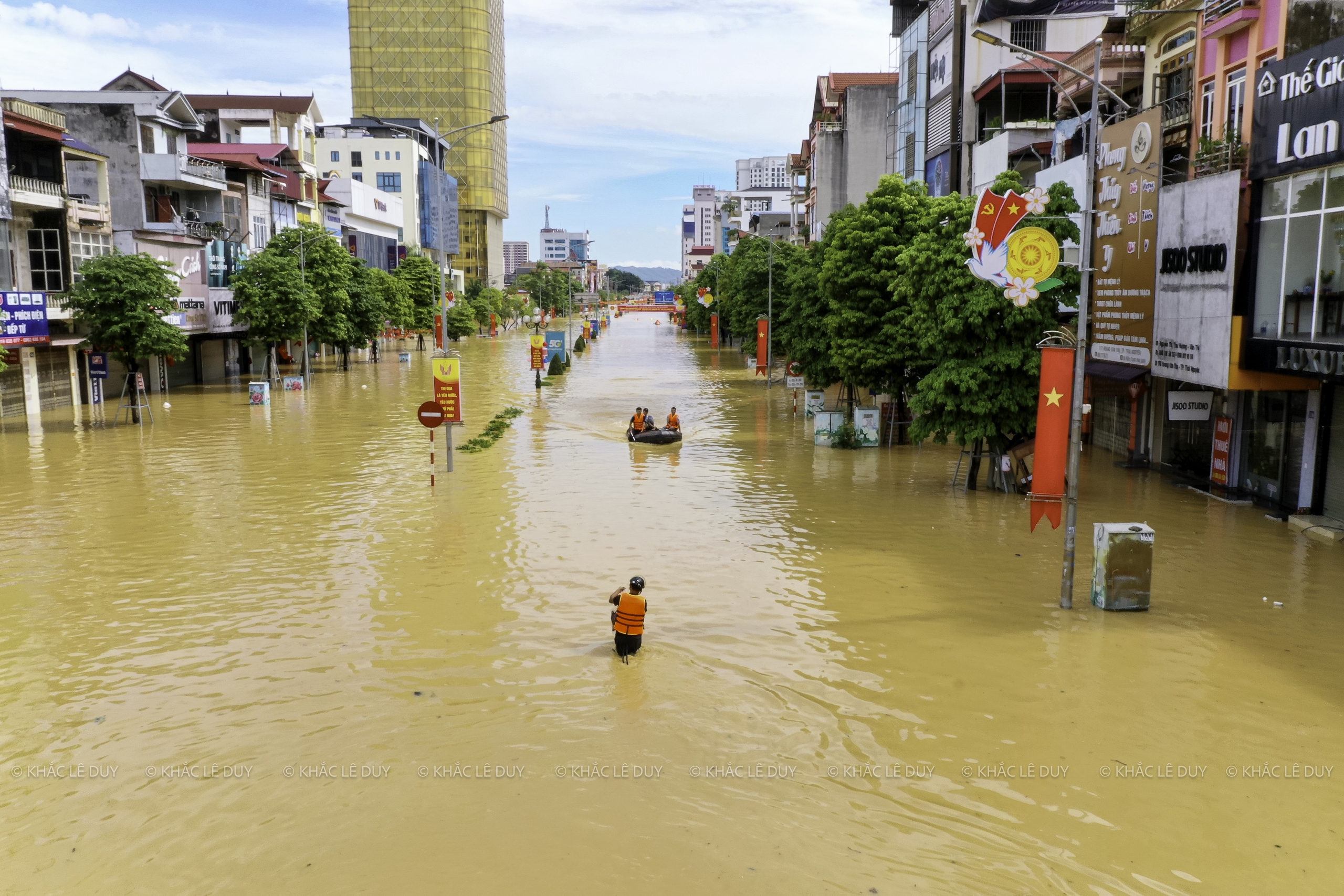 Vid middagstid den 8 oktober utnyttjade herr Le Duy Khac (38 år gammal, i Phan Dinh Phung-distriktet) regnet för att med hjälp av en flycam ta bilder av några platser i Thai Nguyen som var djupt översvämmade av den historiska översvämningen: Gia Sang-distriktet, Phan Dinh Phung, Gia Bay-bron, Ben Oanh-bron, Huong-bron, området med runda öar i centrum av den gamla staden Thai Nguyen, den nord-sydliga tunneln, Quan Trieu-distriktet (gamla Quang Vinh-distriktet), Thai Nguyen University of Education...