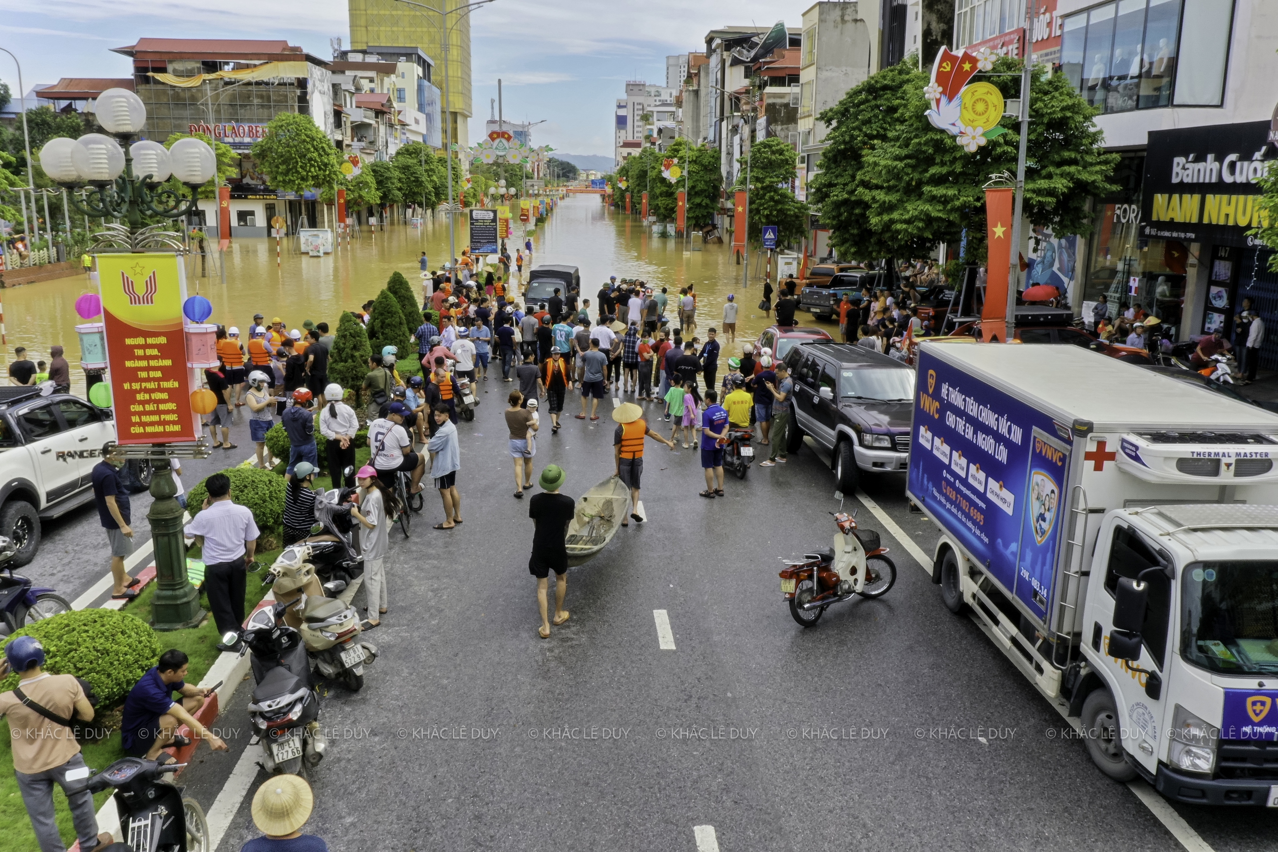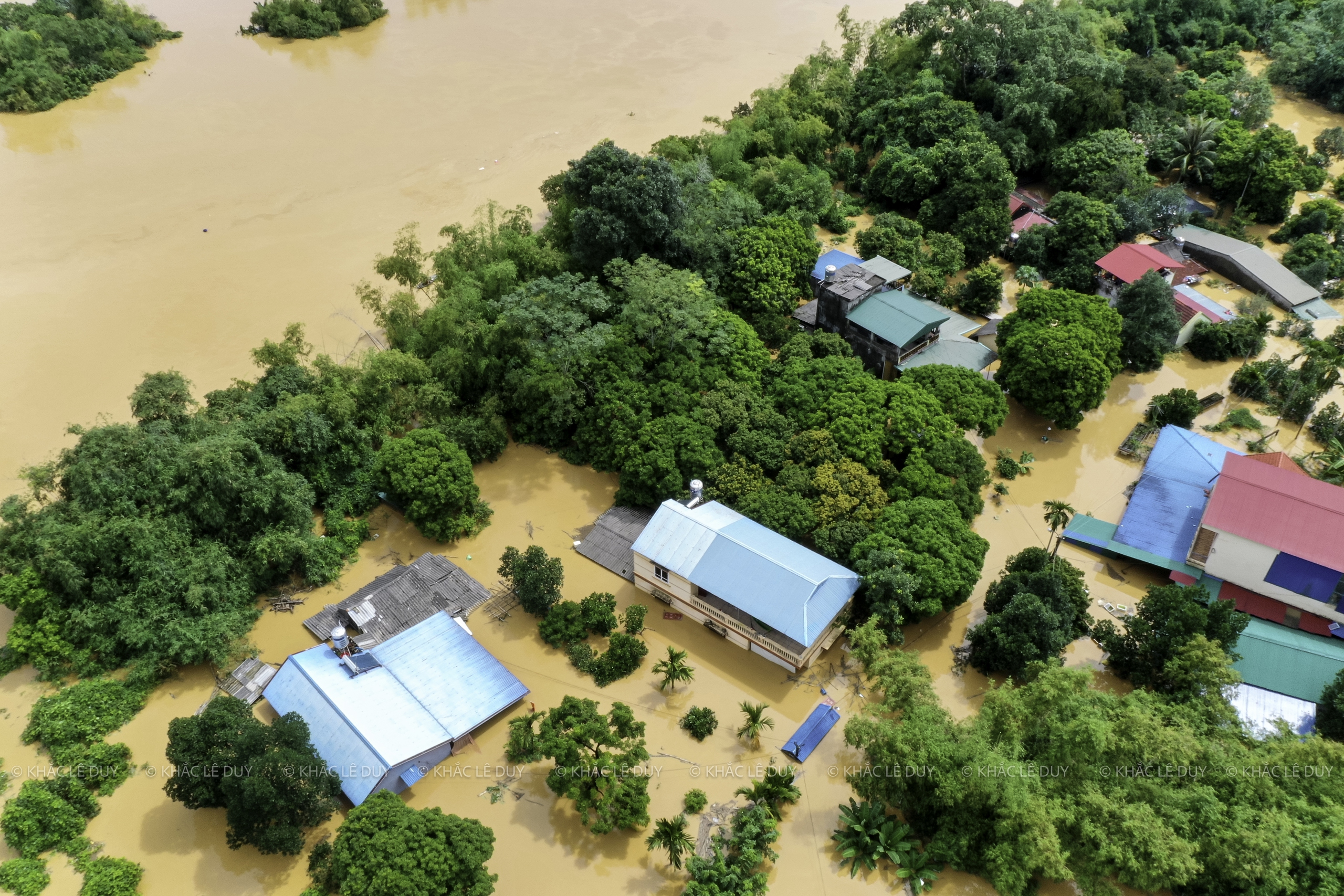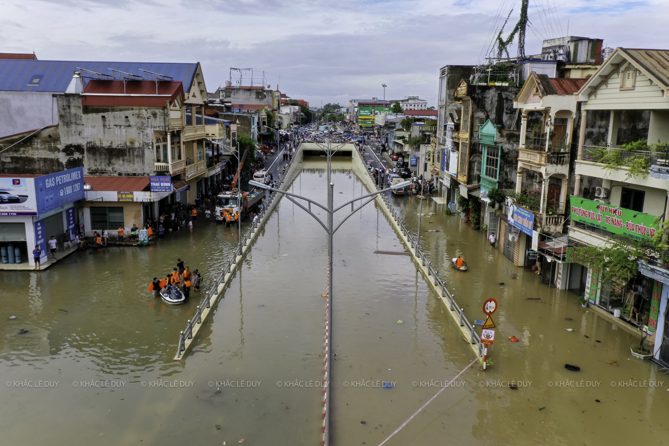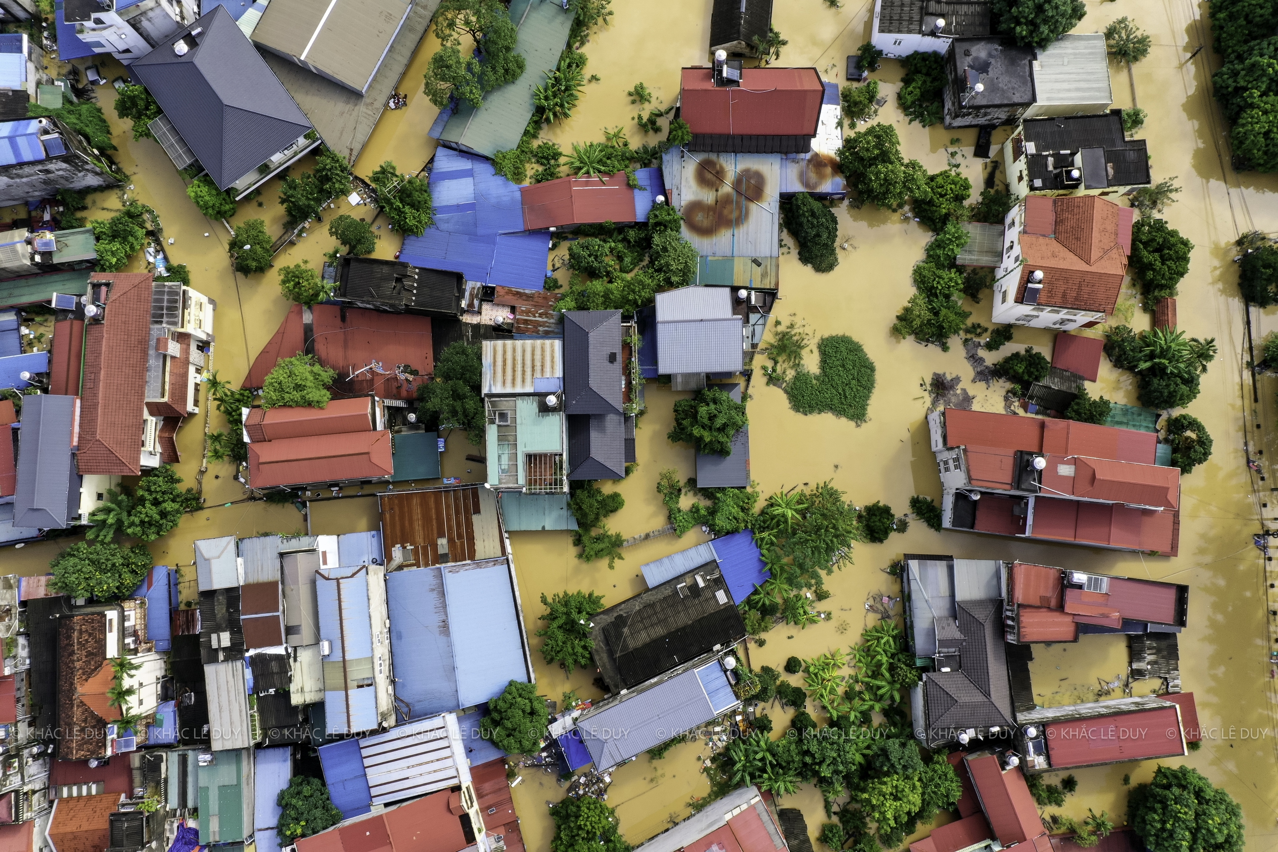 Vid middagstid den 8 oktober utnyttjade herr Le Duy Khac (38 år gammal, i Phan Dinh Phung-distriktet) regnet för att med hjälp av en flycam ta bilder av några platser i Thai Nguyen som var djupt översvämmade av den historiska översvämningen: Gia Sang-distriktet, Phan Dinh Phung, Gia Bay-bron, Ben Oanh-bron, Huong-bron, området med runda öar i centrum av den gamla staden Thai Nguyen, den nord-sydliga tunneln, Quan Trieu-distriktet (gamla Quang Vinh-distriktet), Thai Nguyen University of Education...