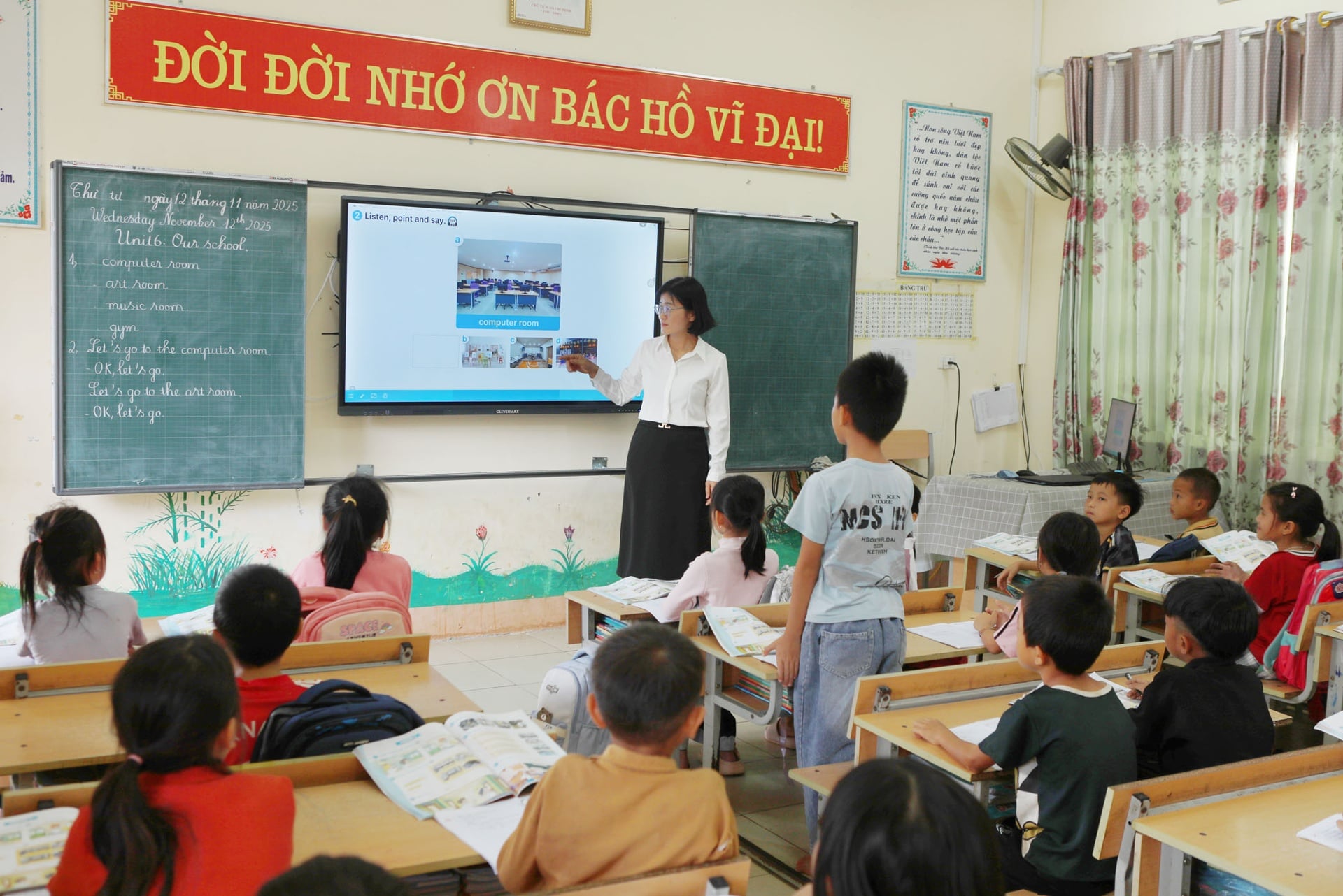 I ett samtal med oss sa läraren Nguyen Van Minh, rektor för Trung Chai Primary and Secondary School for Ethnic Minh: Vi ser engelska som en av de viktiga nycklarna till att förbättra kvaliteten på den omfattande utbildningen. Även om vi har svårigheter eftersom eleverna huvudsakligen kommer från de etniska grupperna Mang och Mong, är deras engelska uttal fortfarande begränsat. För att övervinna denna svårighet gav skolan det professionella teamet i uppdrag att utveckla en professionell utbildningsplan, utforma lektionsplaner i inriktning mot lärande och lek, och tillämpa visuella metoder. Professionella aktiviteter i skolkluster hjälper lärare att dela erfarenheter, övervinna svårigheter med uttal och grammatik, organisera spel och bygga en positiv lärandeatmosfär.