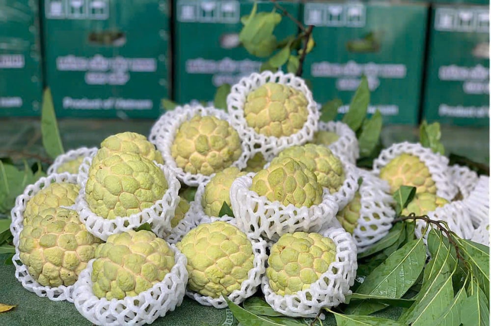 Styrelseordföranden för Minh Trung Agricultural Service Cooperative, Le Minh Trung, delade: ”Kooperativet specialiserar sig på inköp av durian, squash och majs, vars styrka är vaniljsåsäpplen. För närvarande har kooperativet tecknat ett gemensamt inköpsavtal med 250 hektar och stöder även inköp av mer än 400 hektar vaniljsåsäpplen i närliggande områden. Kooperativet väljer inte att köpa vaniljsåsäpplen till ett fast pris, utan priset fluktuerar från marknaden och lägger till 3 000–5 000 VND/kg för associerade medlemmar.”