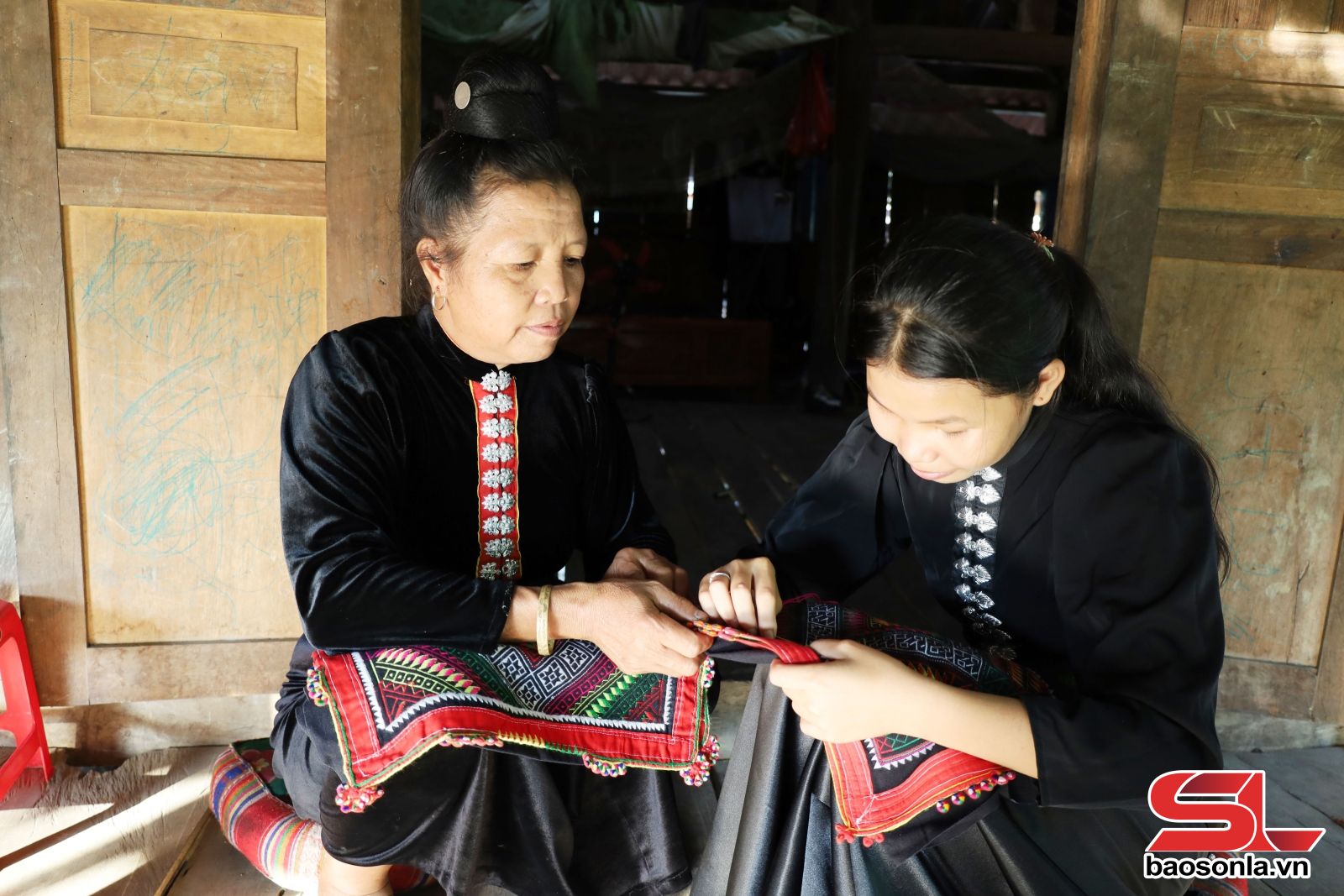 Lo Thi Quynh Nga, från byn Pi Tay i Muong La kommun, fyller bara 15 år i år men kan redan färdigställa en ganska sofistikerad halsduk. Nga delade: Ända sedan jag var 13 år har min mormor lärt mig att brodera halsdukar. Hon sa att jag måste vara tålmodig och noggrann för att få ett vackert broderi. Nu kan jag brodera en halsduk själv. Jag känner mig väldigt glad och stolt över att bära halsduken jag gjorde själv under nationella helgdagar och nyår.
