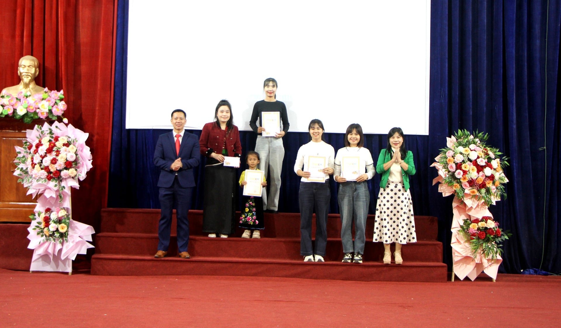 Ledare för kommunens folkkommitté och Phuc Than förskola delade ut första, andra, tredje och tröstpris till förskolesektionen för kreativa tävlingsaktiviteter.