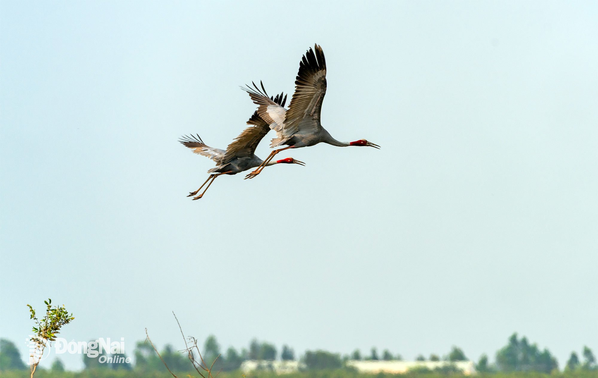 | Ett par rödkronade tranor spelar duett i Tram Chim nationalpark ( Dong Thap ) - ett verk i publikationen och fotoutställningen om rödkronade tranor i oktober 2025. Foto: Fotograf Nguyen Truong Sinh |