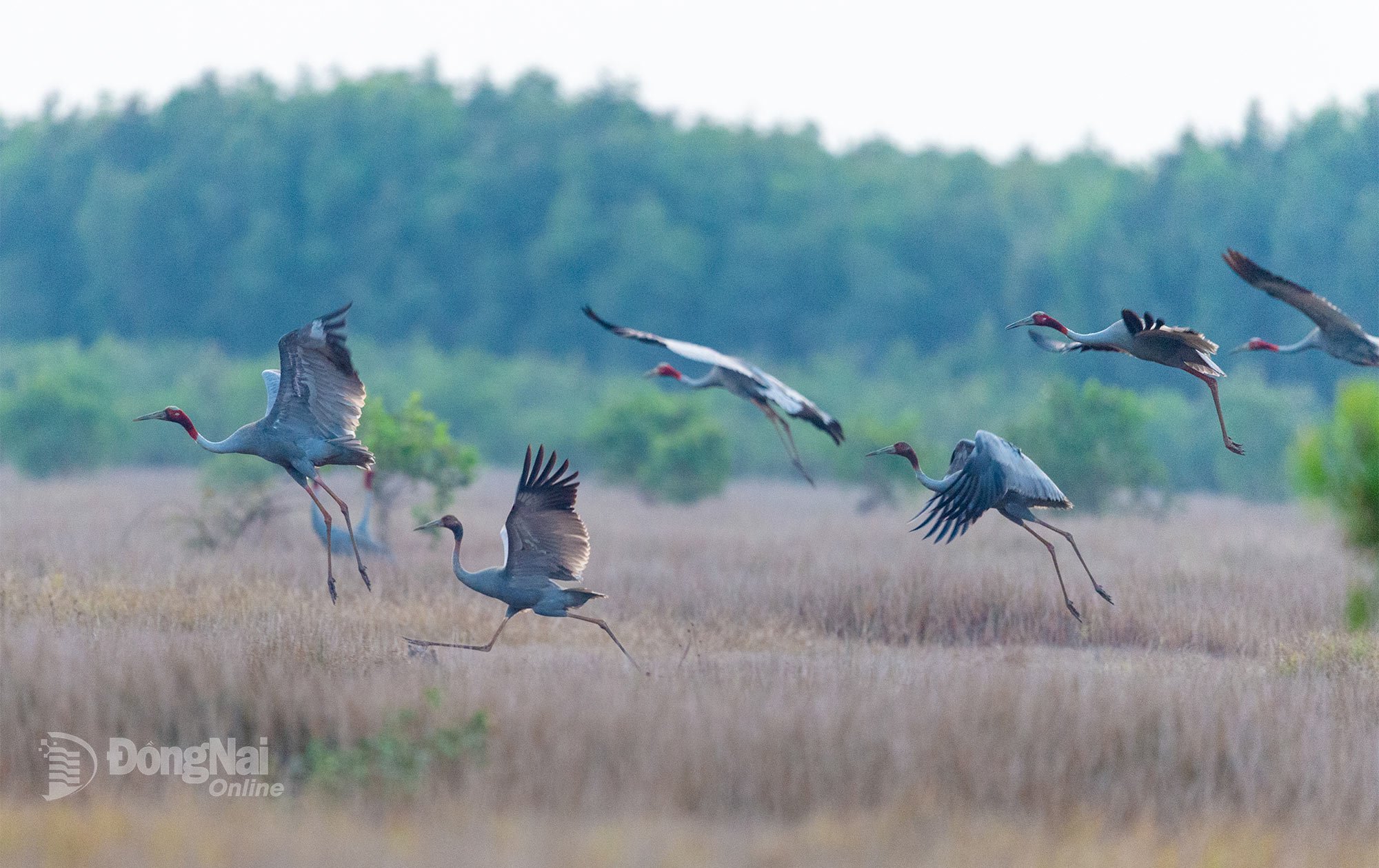 | Rödkronade tranor i fältet A4-området i Tram Chim nationalpark (Dong Thap) - ett verk av fotografen Nguyen Truong Sinh. |