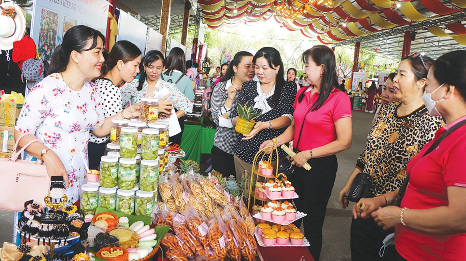 Många startup-produkter från kvinnor i An Giang visas på startup-festivalen som anordnas av Provincial Women's Union. Foto: THUY TIEN