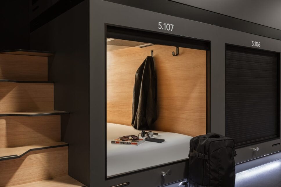 Varje kapsel är cirka 2,2 m lång och 1 m bred, tillräckligt med plats för att en person ska kunna ligga bekvämt ner. Inuti finns krokar, laddningsuttag och speglar, men ingen TV – helt i linje med hotellets motto: "Det här är till för att sova, inte för att underhålla."
