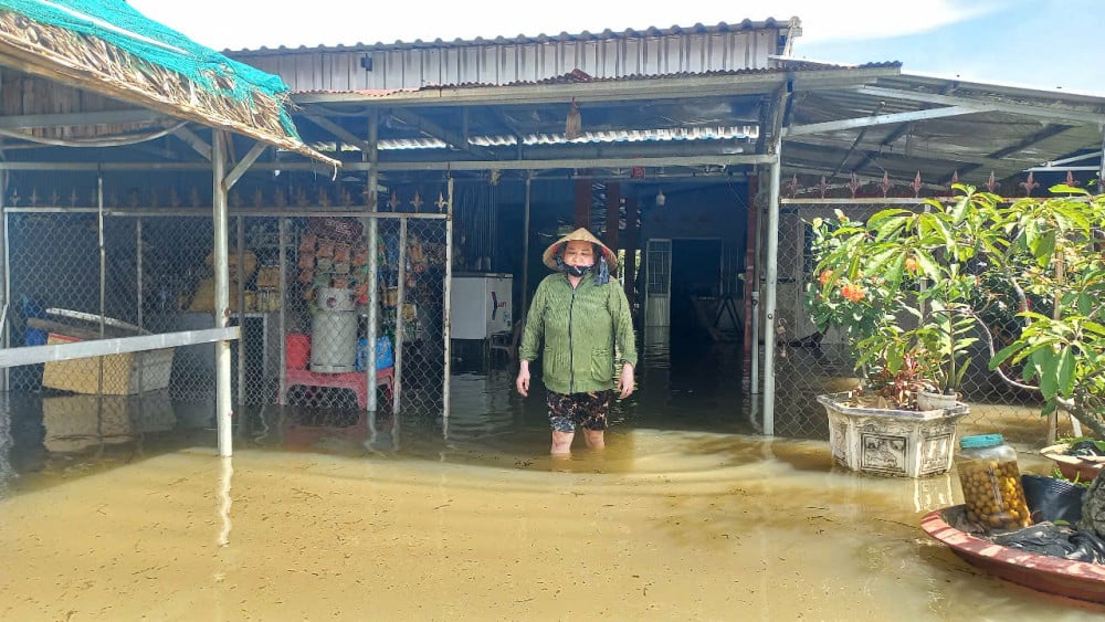 Inte långt därifrån översvämmades även Tran Van Tuans livsmedelsbutik i Ca Na-byn i kommunen Tuyen Binh. Han var tvungen att stötta upp sina varor och använda tillfälliga träd som stig till sitt hus för att sälja varor till lokalbefolkningen.