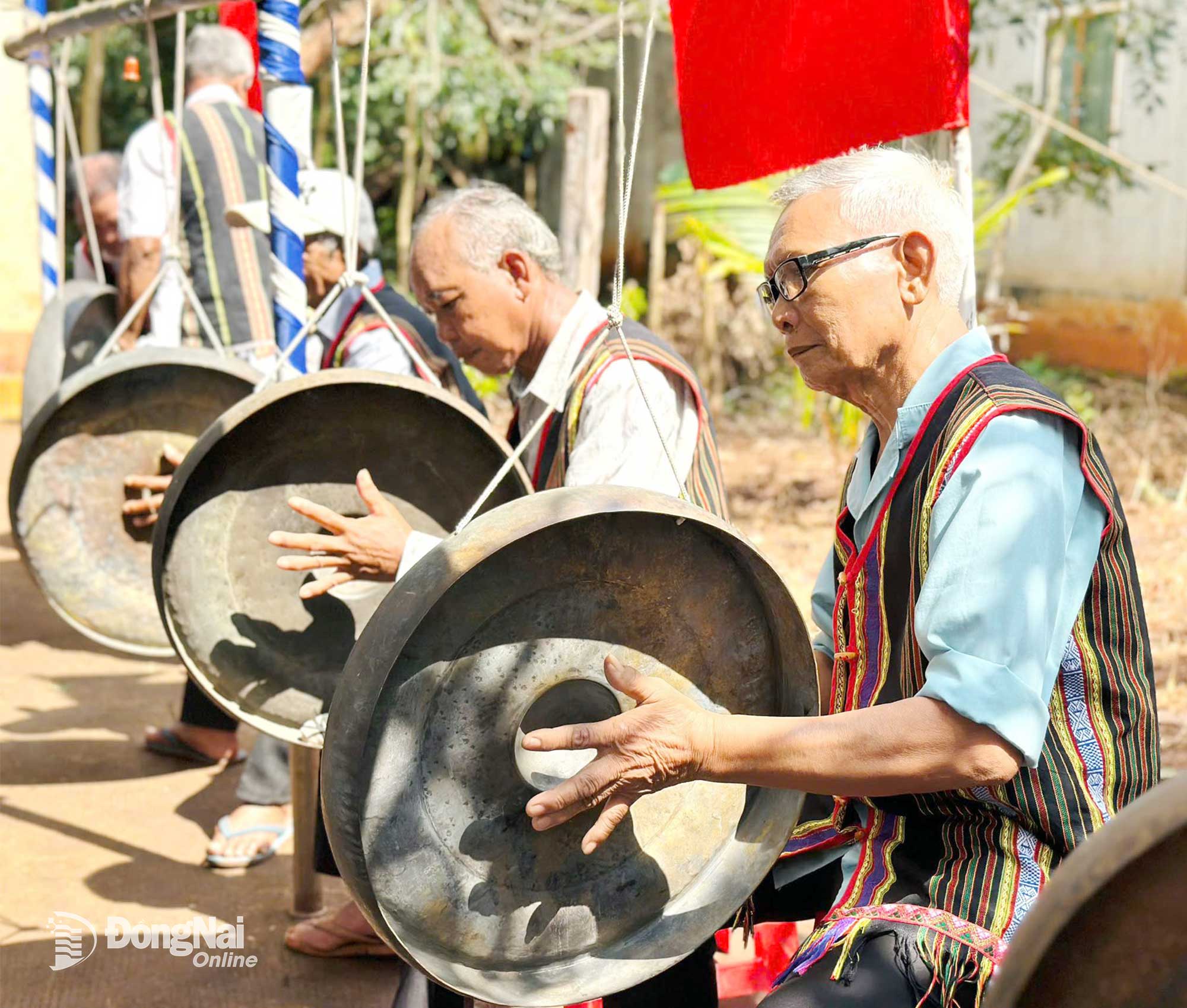 | Etniska minoriteter framför gonger i stadsdelen Binh Ninh I, Binh Long-distriktet. Foto: Phuoc Sang |