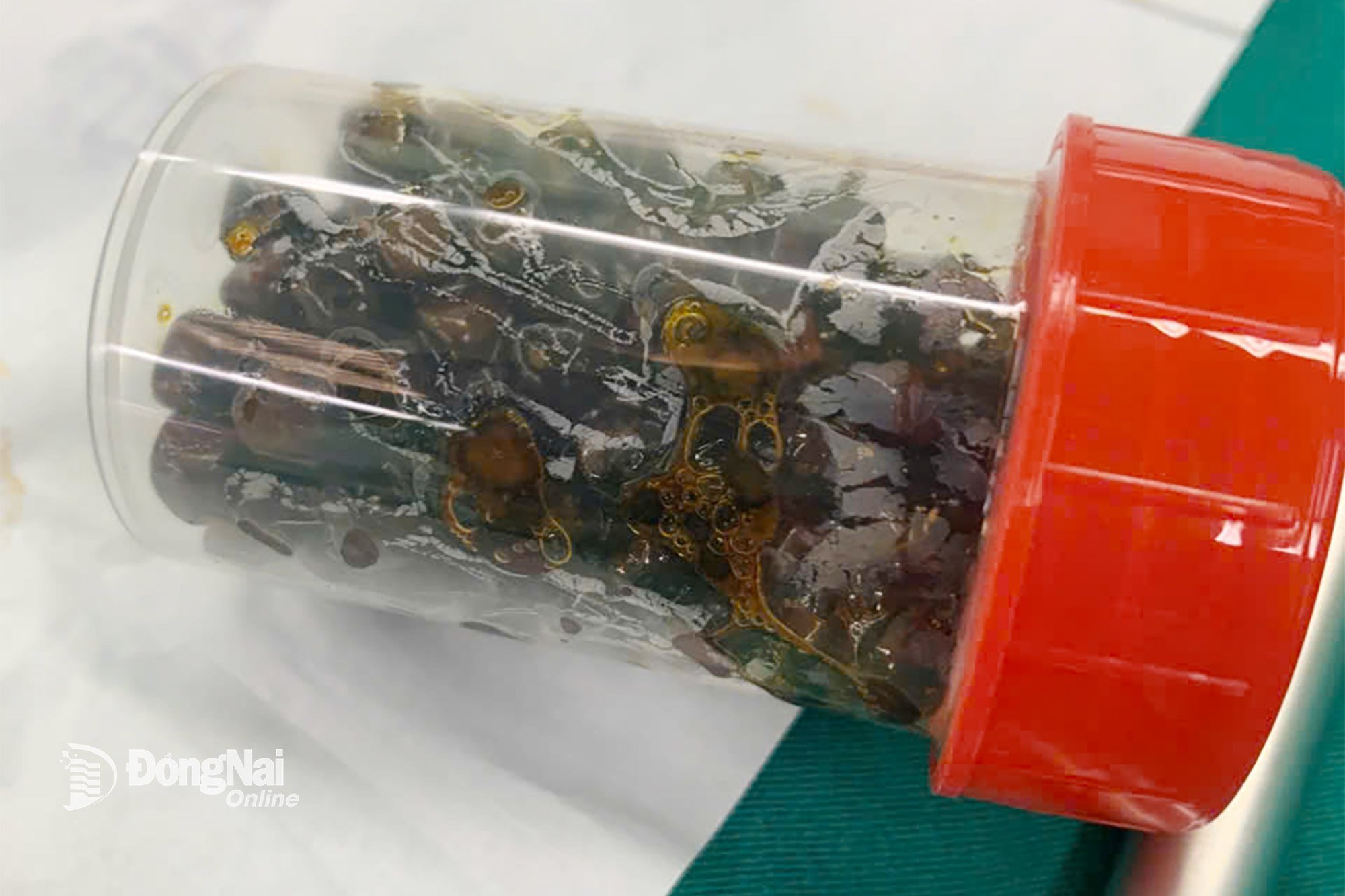 MSc. Dr. Nguyen Van Manh, biträdande chef för allmänkirurgiska avdelningen, sa: Med tanke på patientens tillstånd utförde läkarna laparoskopisk kirurgi för att ta bort patientens gallblåsa. Läkarna registrerade mer än 100 stenar i patientens gallblåsa. Efter operationen var patientens hälsa stabil.