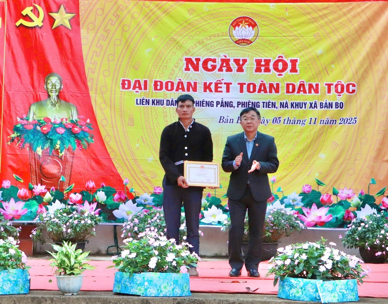För att uppmuntra folket på festivalen uttryckte kamrat Giang A Tinh - vice ordförande för den provinsiella folkkommittén - ett erkännande för invånarnas insatser och solidaritet i Ban Bo-kommunen, som ligger mellan byarna Phieng Pang - Phieng Tien - Na Khuy, för ekonomisk utveckling och uppbyggnad av kulturlivet i bostadsområdena.