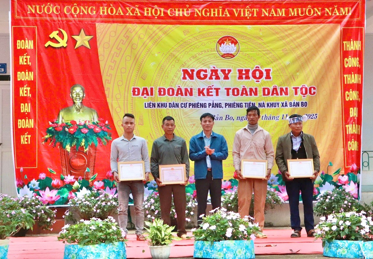 Vid detta tillfälle överlämnade kamrat Giang A Tinh - medlem av provinspartiets ständiga kommitté och vice ordförande för provinsens folkkommitté - på uppdrag av provinsens provinsiella partikommitté, folkrådet, folkkommittén och Vietnams fosterlandsfrontkommitté uppmuntrande gåvor till representanter för byområdet Phieng Pang - Phieng Tien - Na Khuy. Ban Bo-kommunen tilldelade Phieng Pang titeln kulturby; utdelade förtjänstintyg till fyra hushåll med enastående prestationer i rörelsen "Alla människor förenas för att bygga ett kulturliv" år 2024 i byområdet Phieng Pang - Phieng Tien - Na Khuy; erkände titeln kulturfamilj för 159 kulturhushåll i byområdet.