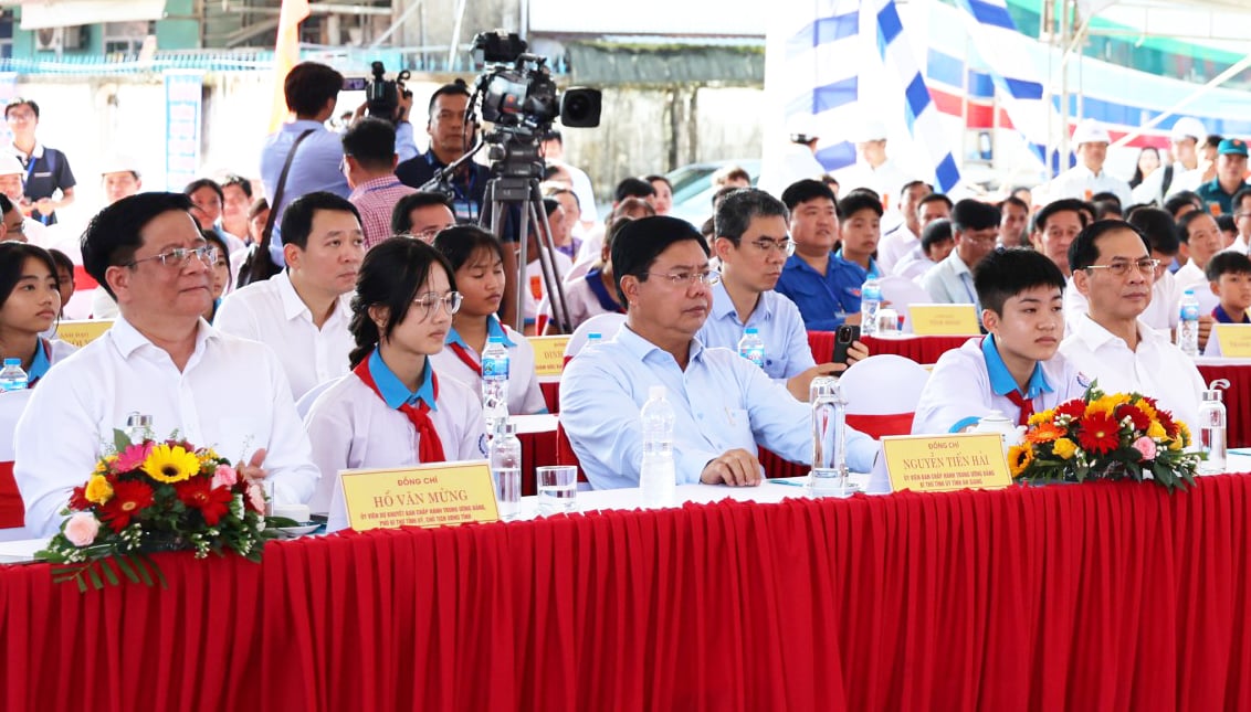 Spadtagsceremonin hölls i en kombination av fysiska och online-format, med den centrala bryggan i An Giang- provinsen vid Vinh Gia Primary - Secondary Boarding School (Giong Cat Hamlet, Vinh Gia kommun, An Giang-provinsen).