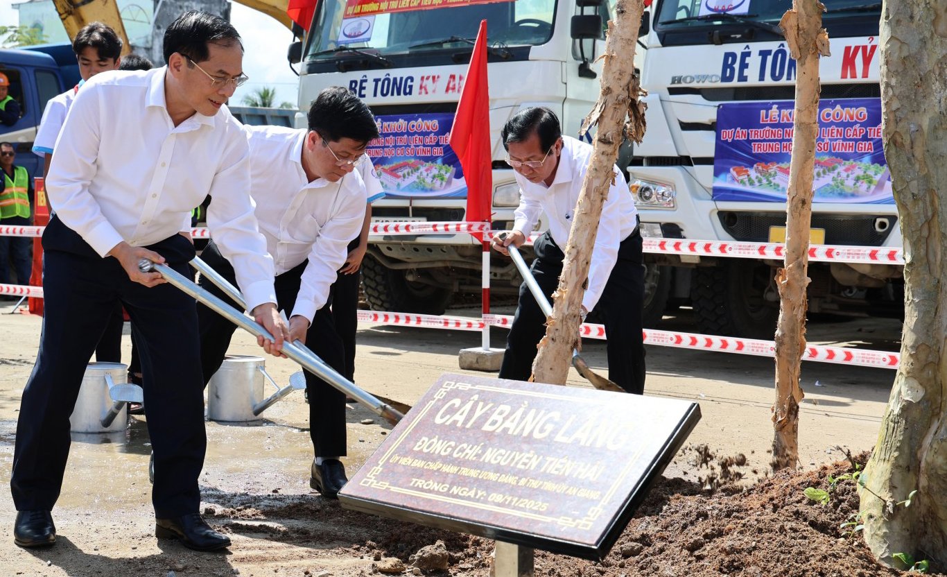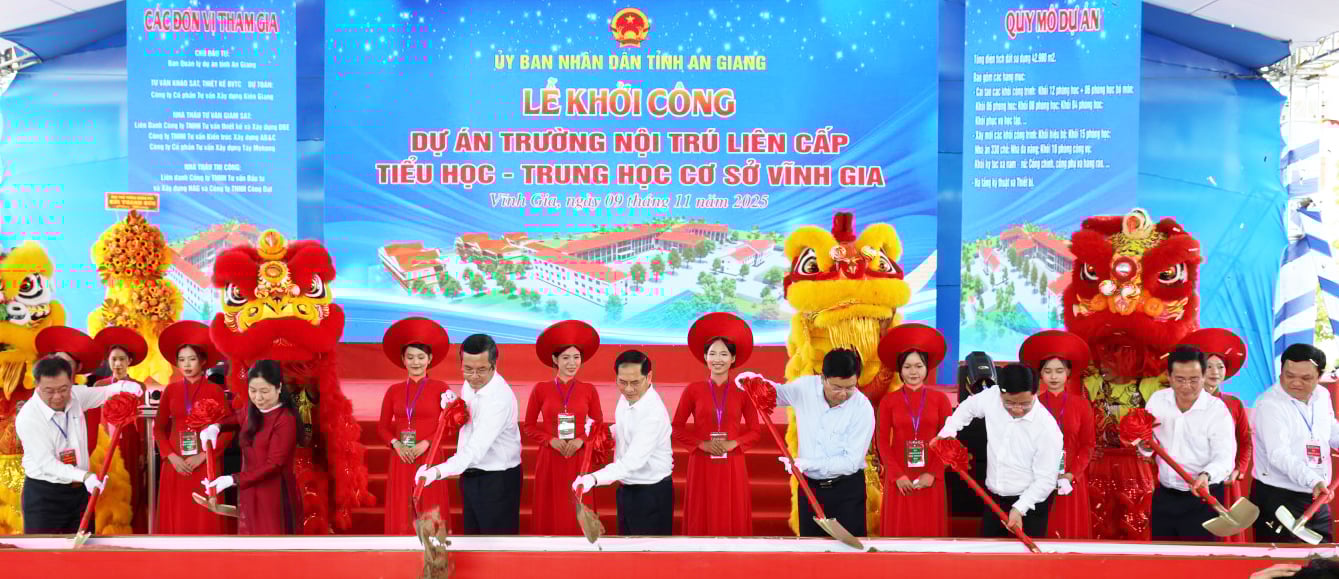 Medlem av partiets centralkommitté, vice premiärminister Bui Thanh Son, och medlem av partiets centralkommitté, sekreterare för An Giangs provinsiella partikommitté, Nguyen Tien Hai, deltog i den första spadtagen för Vinh Gia Primary - Secondary internatskola.