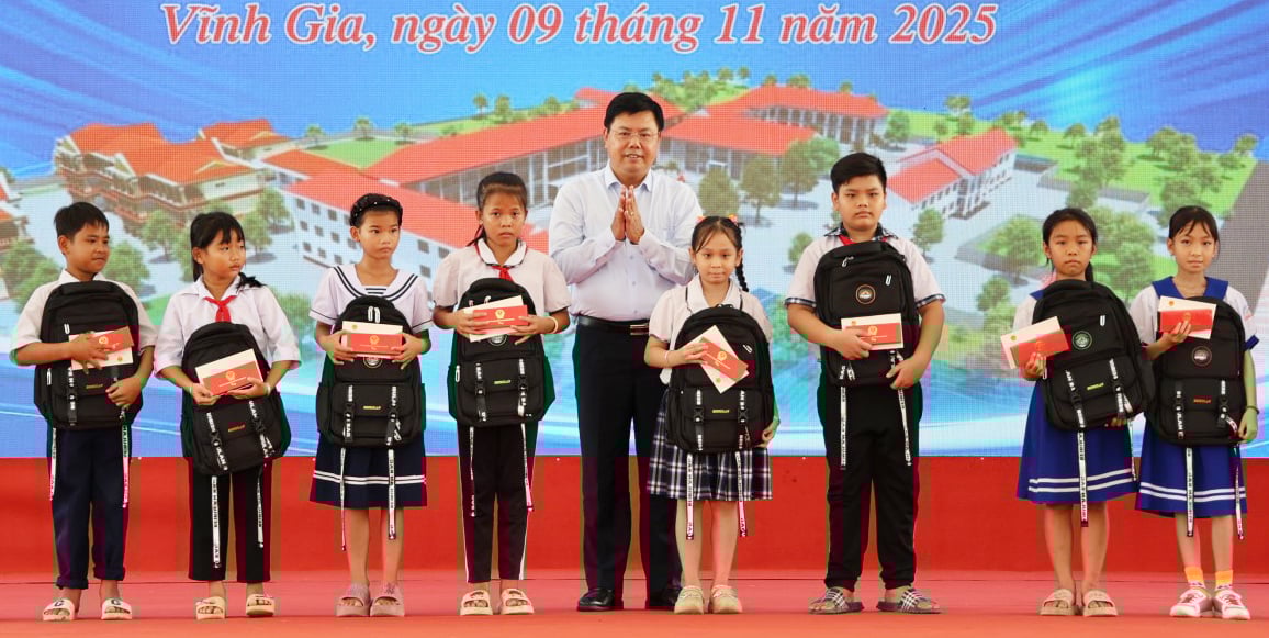 Vid ceremonin delade vice premiärminister Bui Thanh Son ut gåvor och 20 stipendier till utmärkta studenter i svåra omständigheter och 10 lärare i svåra omständigheter i Vinh Gia kommun; varje gåva var värd 1 miljon VND.