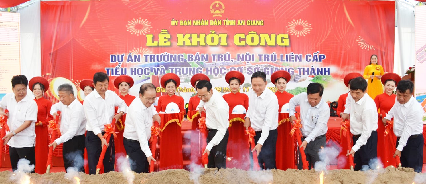 I Giong Ke-byn i Giang Thanh-kommunen deltog kamrat Nguyen Thanh Nhan, ständig biträdande sekreterare i den provinsiella partikommittén, ordförande för folkrådet i An Giang-provinsen, och kamrat Nguyen Thanh Phong, medlem av den provinsiella partikommitténs ständiga kommitté och ständig vice ordförande i folkkommittén i An Giang-provinsen, i den första spadtagen för Giang Thanhs internatskola.