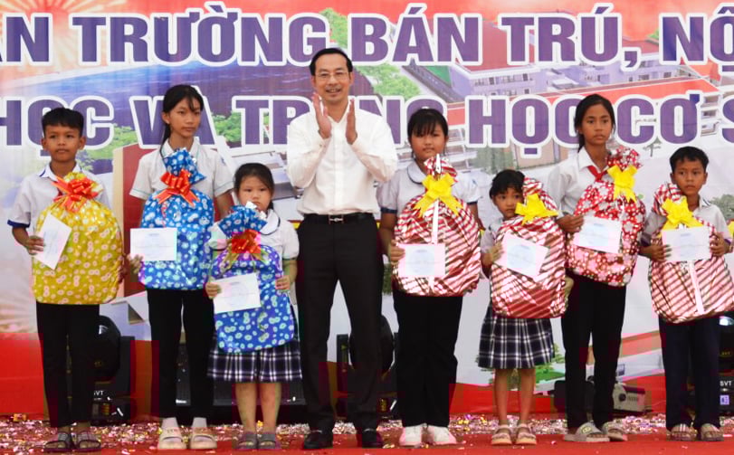 Medlem i partiets centralkommitté och sekreterare för An Giangs provinsiella partikommitté, Nguyen Tien Hai, delade ut gåvor och stipendier till utmärkta studenter med svåra omständigheter.