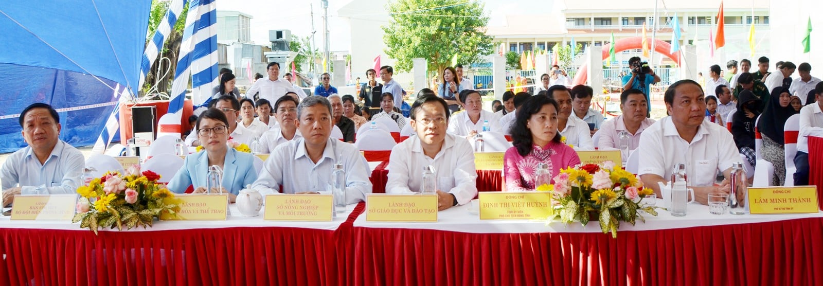 Biträdande sekreterare i An Giangs provinsiella partikommitté Lam Minh Thanh; medlem av provinspartiets ständiga kommitté, ständig biträdande sekreterare i provinspartiets kommitté för provinsiella partiorgan Vo Nguyen Nam; medlem av provinspartiets kommitté, vice ordförande i provinsens folkkommitté Ngo Cong Thuc; medlem av provinspartiets kommitté, vice ordförande i provinsens folkråd Dinh Thi Viet Huynh deltog i den första spadtagen för byggandet av Khanh An grundskola och gymnasium, Khanh Binh kommun.