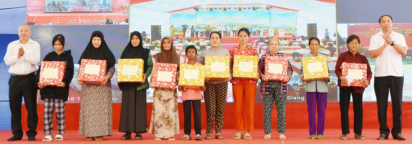 Vid den centrala bropunkten i An Giang-provinsen närvarande var medlem av partiets centralkommitté, vice premiärminister Bui Thanh Son; medlem av partiets centralkommitté, sekreterare i An Giangs provinsiella partikommitté, Nguyen Tien Hai; suppleant i partiets centralkommitté, biträdande sekreterare i provinsens partikommitté, ordförande för An Giangs provinsiella folkkommitté, Ho Van Mung; biträdande utbildningsminister Nguyen Van Phuc; tidigare ledare för provinsens partikommitté, folkrådet och folkkommittén i An Giang-provinsen (gamla) genom olika perioder; medlem av provinsens partikommittés ständiga kommitté, folkrådets ständiga kommitté, folkkommittén, Vietnams fosterlandsfrontskommitté i An Giang-provinsen, ledare för avdelningar, grenar, sektorer, massorganisationer på provinsiell nivå och Vinh Gia-kommunen.