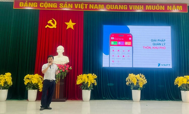 VNPT-representant presenterar lösningar för by- och grannskapsförvaltning