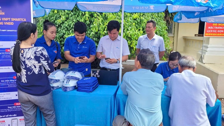 Efter ceremonin fortsatte den digitala upplevelsen och den digitala transformationsplatsen med spännande aktiviteter som lockade många människor. Här organiserade telekommunikations- och postföretag montrar för att visa och vägleda tekniska metoder, såsom installation av VNeID- och Dak Lak So-applikationer, registrering för digitala signaturer, kontantlösa betalningar, onlineshopping och öppnande av gratis bankkonton. Samtidigt introducerades OCOP-produkter från Binh Kien-distriktet med QR-koder, vilket hjälpte människor att direkt uppleva skanning av koder för att söka efter information på ett levande och bekvämt sätt.