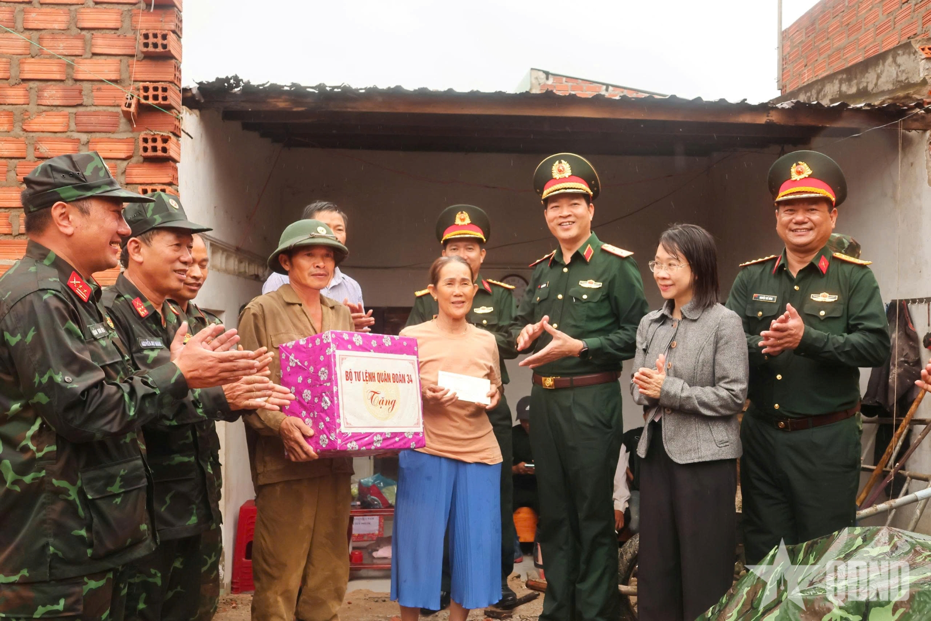 I enlighet med regeringens och försvarsministeriets direktiv angående genomförandet av "Quang Trung-kampanjen" utplacerade den 34:e armékåren över 700 officerare och soldater, tillsammans med ett stort antal fordon, utrustning och förnödenheter, till svårt skadade områden för att hjälpa människor att övervinna konsekvenserna av naturkatastrofer och snabbt stabilisera sina liv. I provinserna Gia Lai och Dak Lak fick armékåren i uppdrag att bygga 80 nya hus för människorna. Enheten identifierade detta som en viktig och brådskande politisk uppgift.