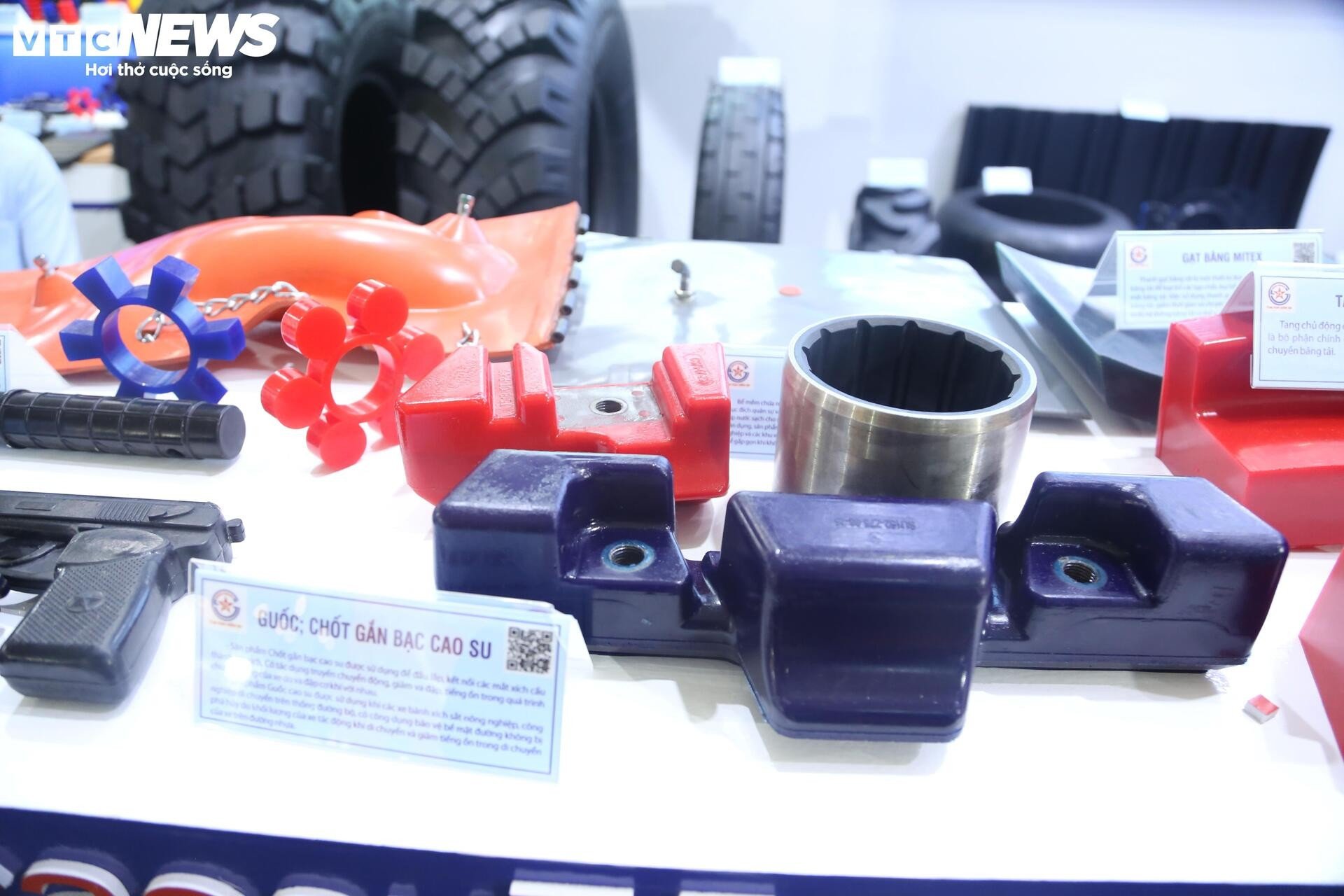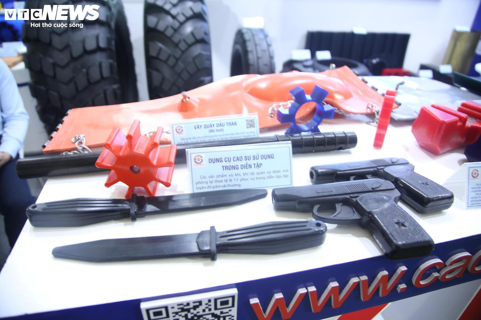 Produkter i montern för 75 Rubber Company Limited. Enligt företagets representant är företagets mål, när de deltar i den första höstmässan 2025, att främja bilden, bekräfta varumärket och produktionskapaciteten hos ett försvarsindustriföretag som kan överföra produkter till civila marknader och exportmarknader.