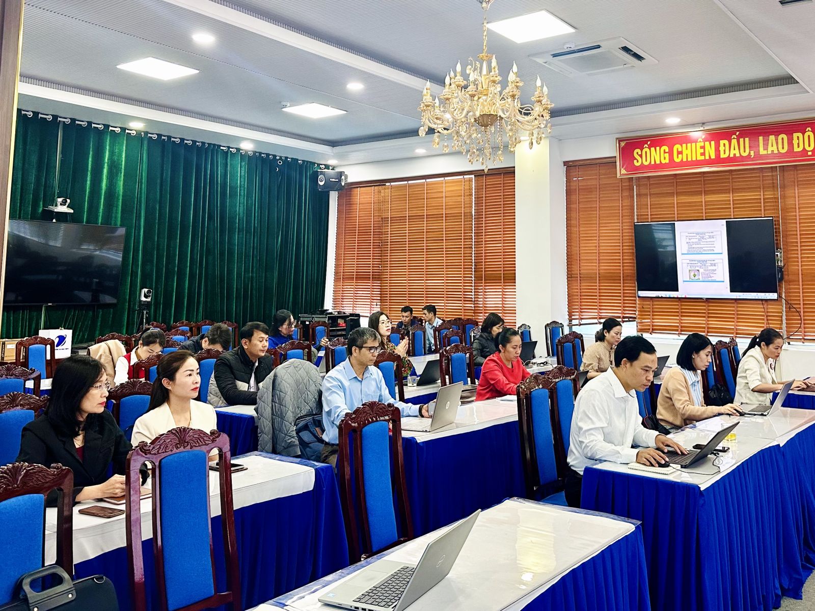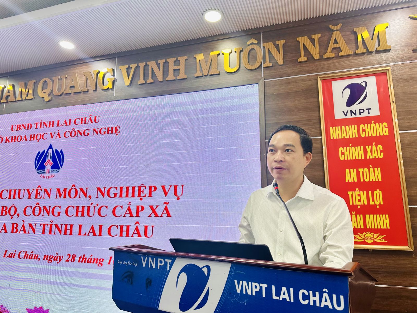 Under utbildningen lyssnade deltagarna på följande innehåll: Instruktioner om statlig inspektion av mätinstrument, mätningar och kvantiteter av förpackade varor som cirkulerar på marknaden; Instruktioner om att överväga och erkänna initiativ samt tillämpningens inflytande och effektivitet; Instruktioner om drift av specialiserade dataöverföringsnätverk i stadsdelar och kommuner; Instruktioner om drift av konferens-tv-system i kommuner och stadsdelar; Instruktioner om hantering av tillhandahållandet av posttjänster för parti- och statliga myndigheter (KT1-posttjänst) i kommuner och stadsdelar; Instruktioner om användning av posttjänster för parti- och statliga myndigheter (KT1-posttjänst) i kommuner och stadsdelar; Instruktioner om implementering av folkkommitténs IT-ansvar på kommunnivå; Instruktioner om implementering av ansvaret att tillhandahålla information om folkkommitténs nätverksmiljö på kommunnivå; Instruktioner om implementering och spridning av programmet "Stödja och främja människor och företags säker och pålitlig online-närvaro med digitala tjänster med det nationella domännamnet .vn"; Instruktioner för implementering, spridning, installation och användning av i-SPEED-applikationen för att mäta internethastighet lokalt.