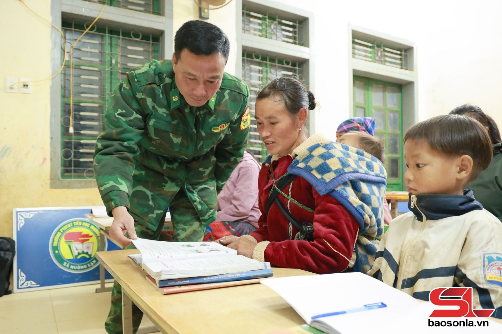 Major Vì Văn Liêm, biträdande befälhavare för de väpnade styrkorna vid Mường Lạn gränsbevakningspost, som har fått i uppdrag att undervisa i läs- och skrivkunnighet, berättade: "Läs- och skrivkunnighetsklassen består huvudsakligen av personer från etniska minoriteter. Många är äldre, med dålig syn och darrande händer. Jag måste använda deras etniska språk för att kommunicera och lära dem att läsa och skriva."
