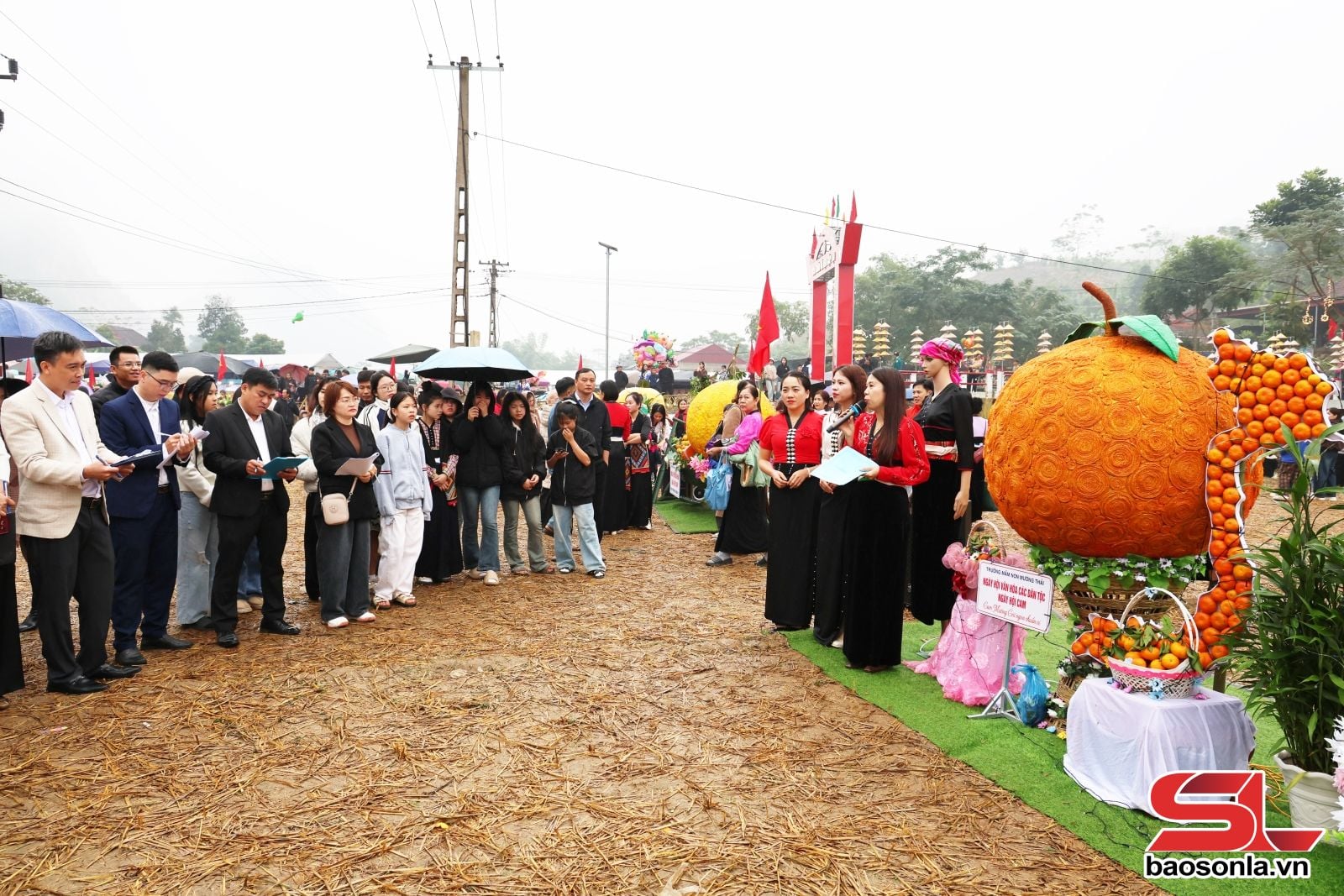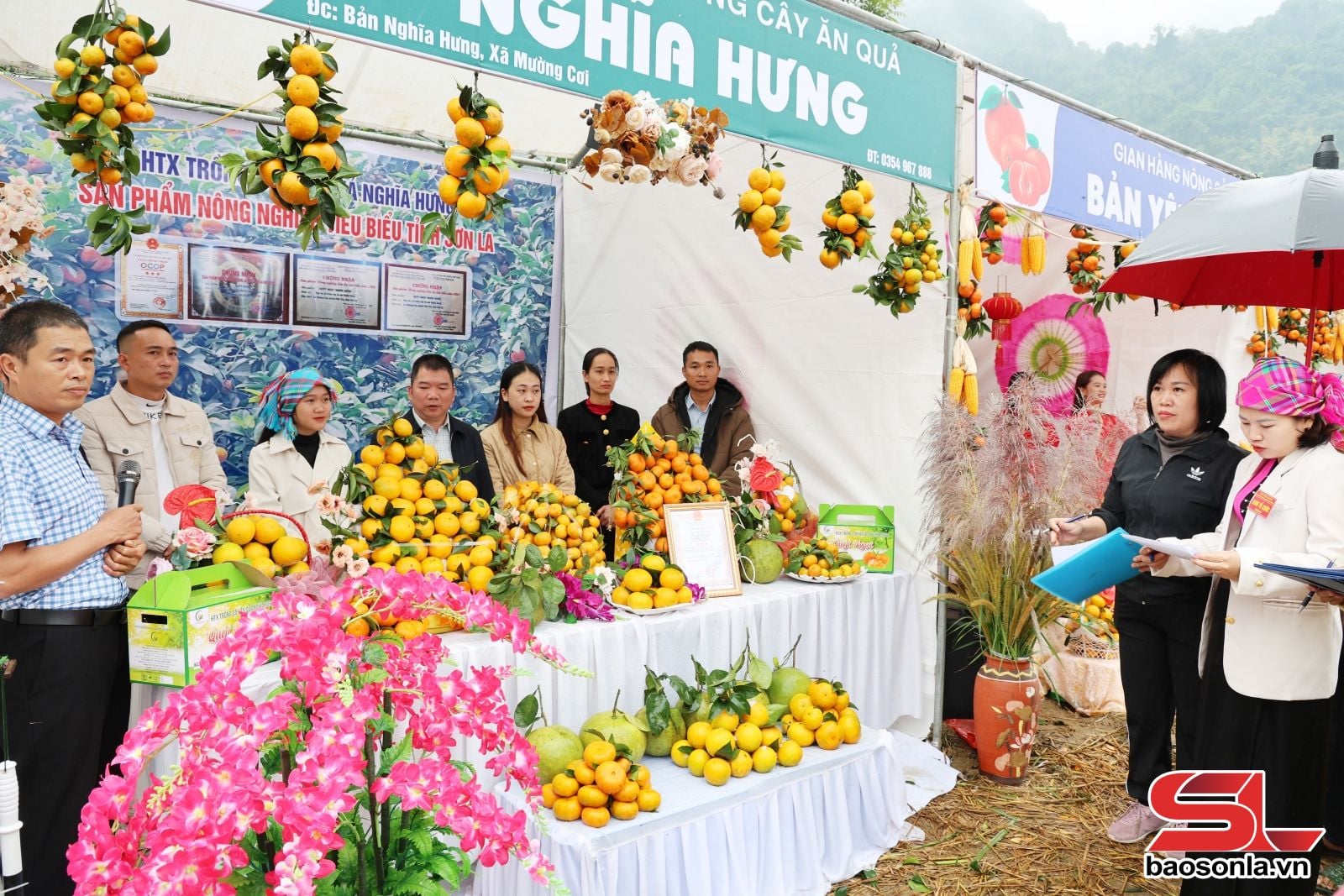 Till tävlingen om utställning av citrusfrukter deltog fem lag från byar och kooperativ i området. Lagen visade upp fruktprodukter: apelsiner, mandariner och grapefrukter, arrangerade efter teman. Båsarna var dekorerade med konstnärliga arrangemang, harmoniska och kreativa layouter, typiska för Muong Coi-kommunen. Varje lag hade 3–5 minuter på sig att presentera idéer, produktionsprocesser och varumärken för varje typ av citrusfrukt i byarna och kooperativen.