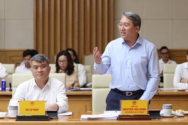 Justitieminister Nguyen Hai Ninh talar. Foto: VGP/Nhat Bac