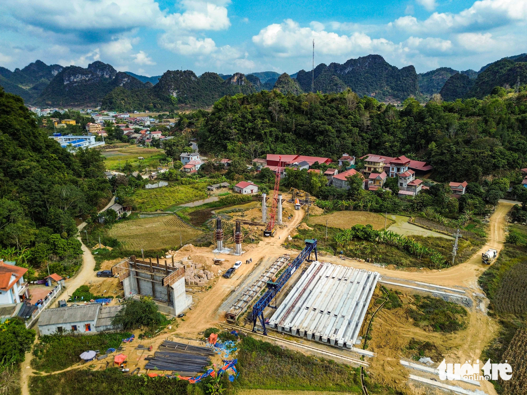 Hundratals kilometer motorvägar påskyndas, på bilden syns byggarbetsplatsen för rutten Dong Dang - Tra Linh - Foto: HONG QUANG
