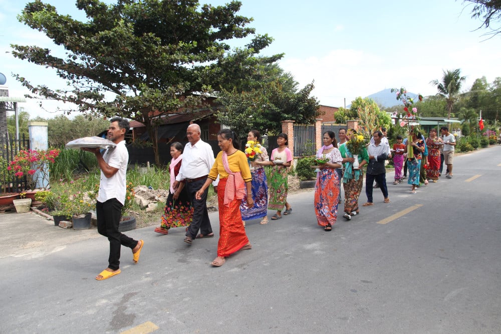 När pagoderna Chung Rut, Ka Ot och Svay kommer till gränskommunerna Phuoc Vinh, Tan Dong och Ninh Dien i samband med nyårsfirandet av Chol Chnam Thmay eller mantelofferceremonin, sjuder de av musik och trumrytmer tillsammans med khmermyter och legender med Chan- och Ro Bam-danser.