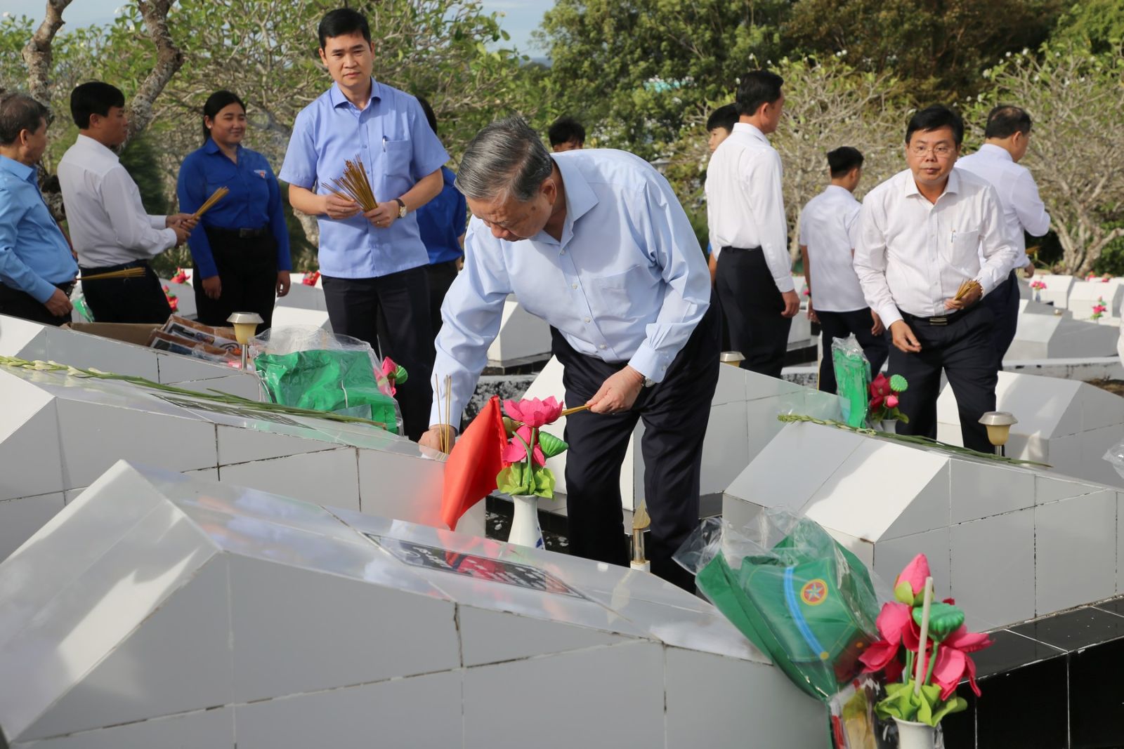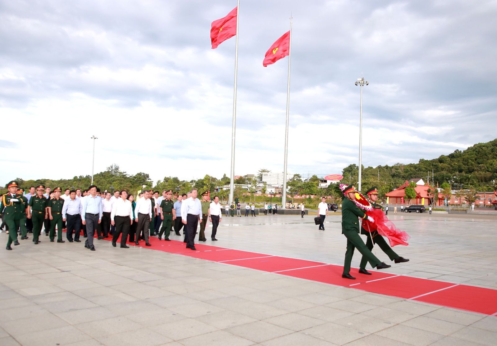 På Ho Chi Minh-torget, i en högtidlig och känslosam atmosfär, överlämnade generalsekreterare To Lam och delegationen respektfullt blommor och rökelse till minne av president Ho Chi Minh och uttryckte sin oändliga tacksamhet för president Ho Chi Minhs stora bidrag och de heroiska martyrer som heroiskt offrade sig för fosterlandets självständighet och frihet och för folkets lycka.