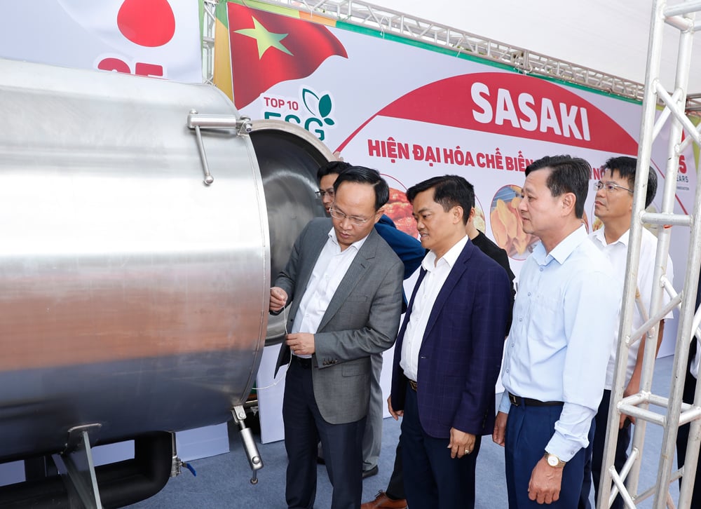 Kamrat Pham Van Thinh och delegater besökte utställningslokalen, presenterade och levererade jordbruksverktyg, maskiner, produktions-, konserverings- och bearbetningsteknik. |