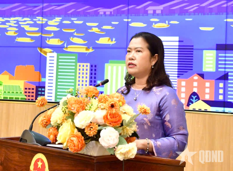 | Kamrat Nguyen Thi Ngoc Diep, vice ordförande för Can Thos folkkommitté, talade vid presskonferensen. |