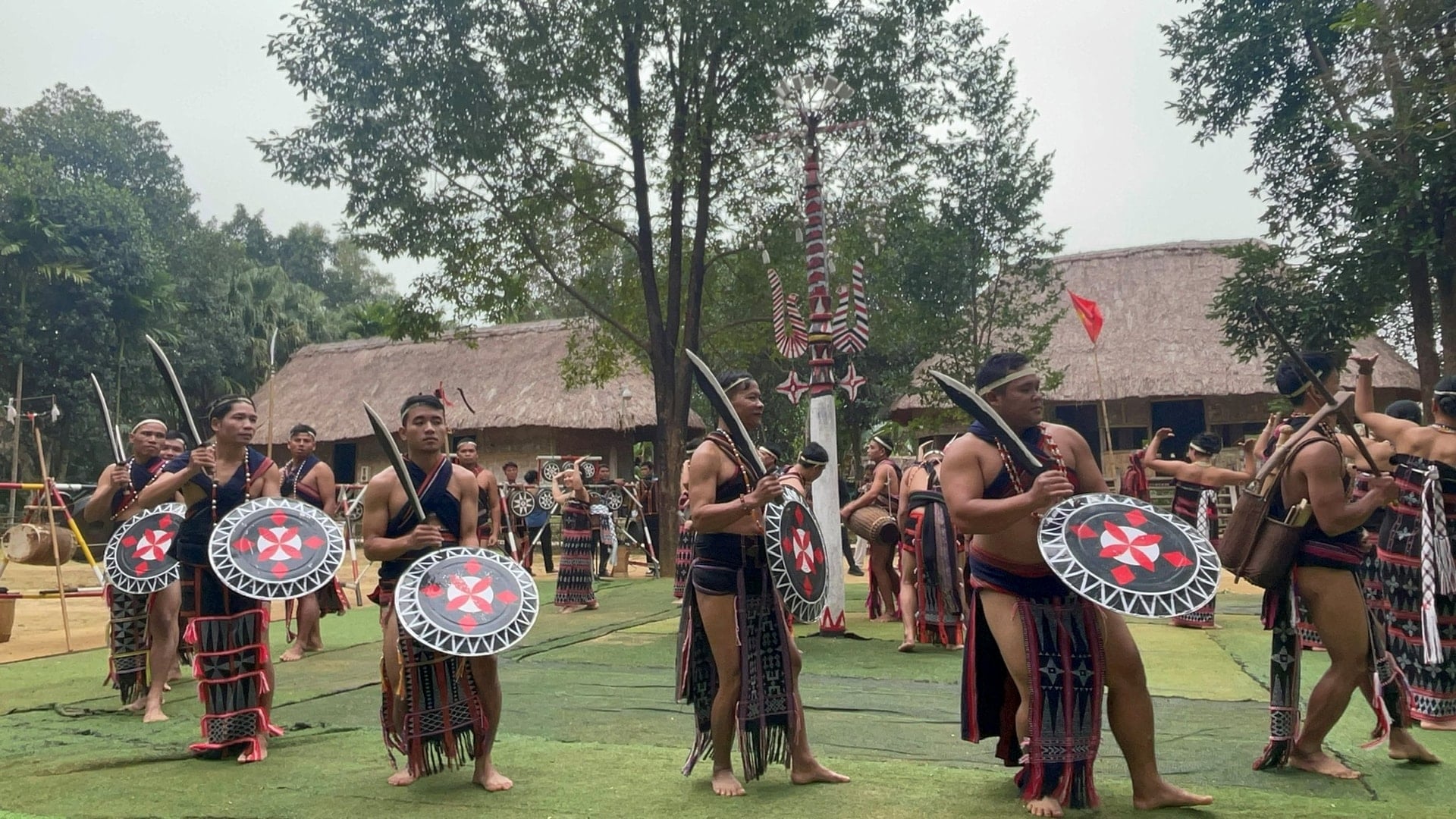 Mer än 30 Co Tu-hantverkare och statister i färgglada traditionella dräkter, i kombination med det rungande ljudet av trummor och gongar, framförde ett program genomsyrat av Co Tu-folkets kulturella identitet.
