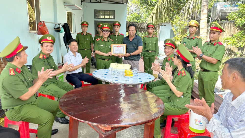 Vid detta tillfälle delade generalmajor Nguyen Van Quoc på uppdrag av Folkets polishögskola II ut förtjänstbevis och tackgåvor till de familjer som stöder soldaterna.