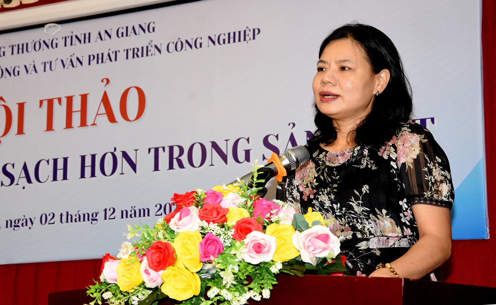 นาย Tran Ngoc Dieu ผู้อำนวย การศูนย์ให้คำปรึกษาและส่งเสริมการพัฒนาอุตสาหกรรม อานซาง กล่าวสุนทรพจน์ในการประชุมเชิงปฏิบัติการ