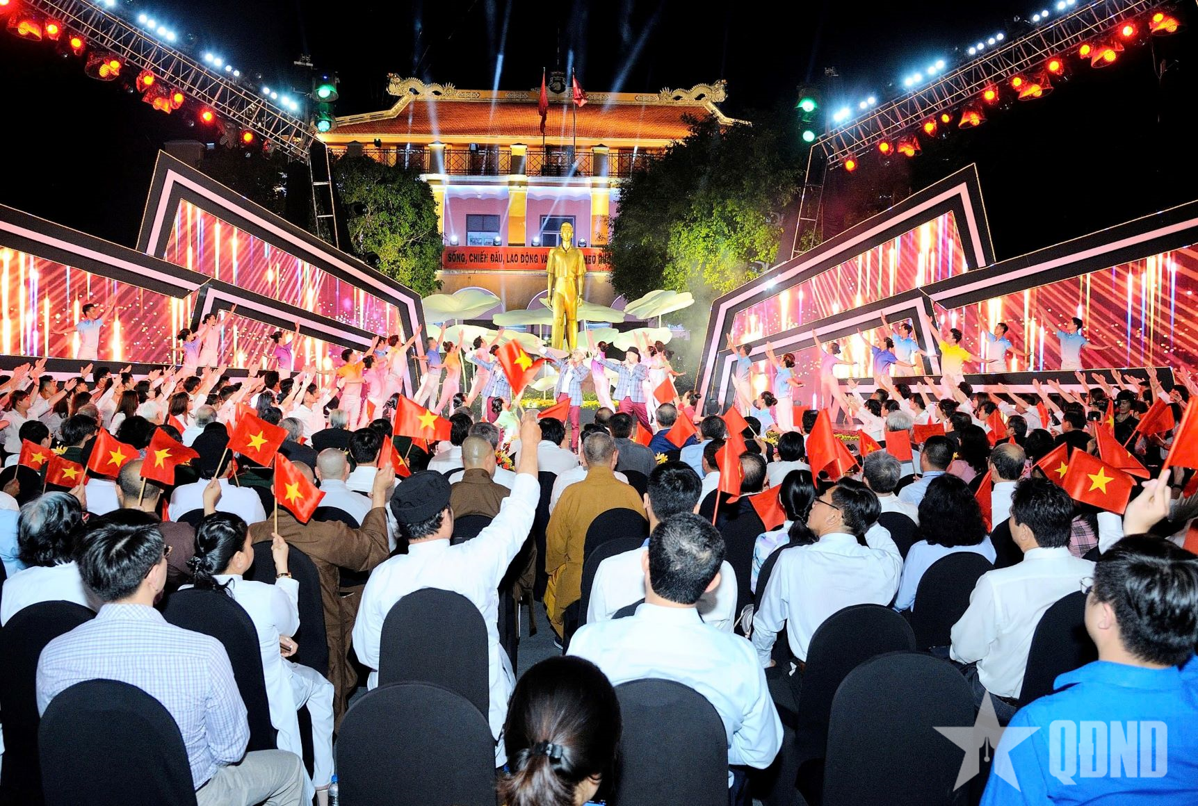 | การแสดงสด "แสงตะวันเจิดจรัส" เป็นการเฉลิมฉลองมาตุภูมิ ประเทศชาติ และความรู้สึกอันศักดิ์สิทธิ์ของประชาชนที่มีต่อประธานาธิบดีโฮจิมินห์ |