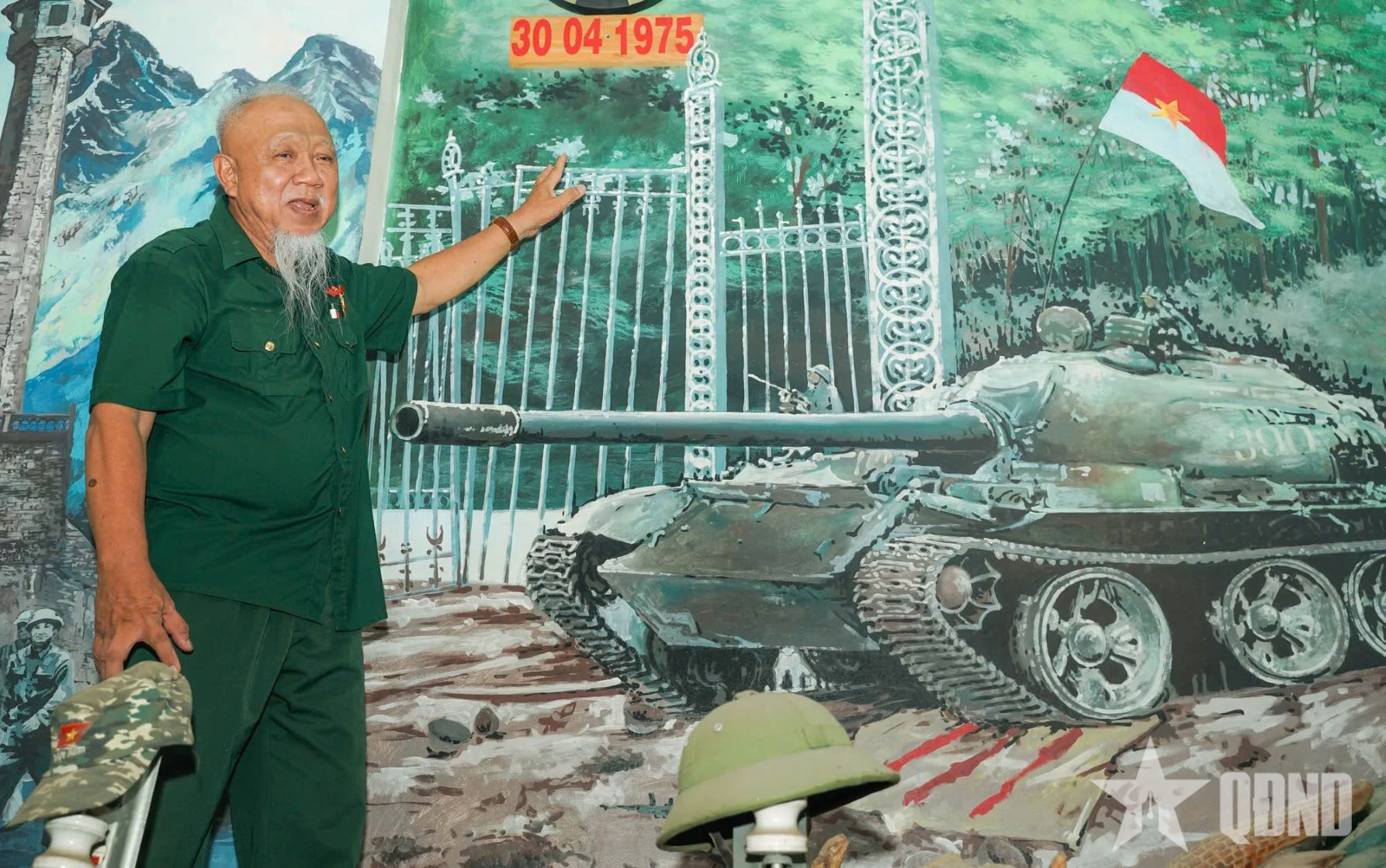| นายหลาม ซวน กวาง ทหารผ่านศึก นำเสนอภาพรถถังพุ่งชนประตูข้างพระราชวังอิสรภาพในบ่ายวันที่ 30 เมษายน 1975 ณ "พื้นที่วัฒนธรรมโฮจิมินห์" |
