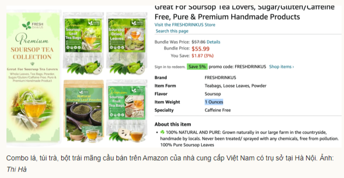 ธุรกิจชาวเวียดนามแห่งหนึ่งขายชาถุงและใบมะนาวเทศแห้งผ่าน Amazon (สหรัฐอเมริกา) ในราคาตั้งแต่ 300,000 ถึงกว่า 1 ล้านดอง (ขึ้นอยู่กับน้ำหนัก)