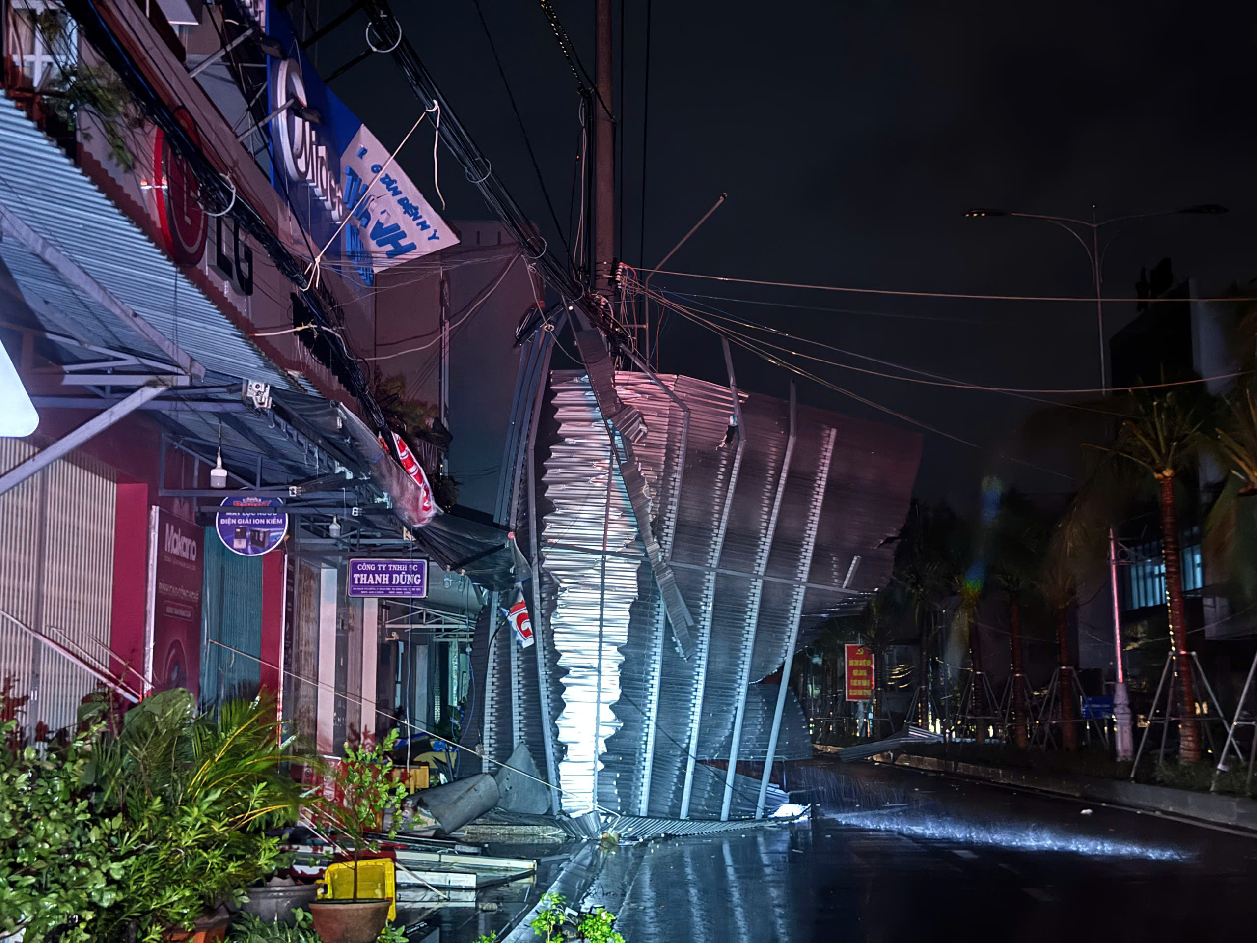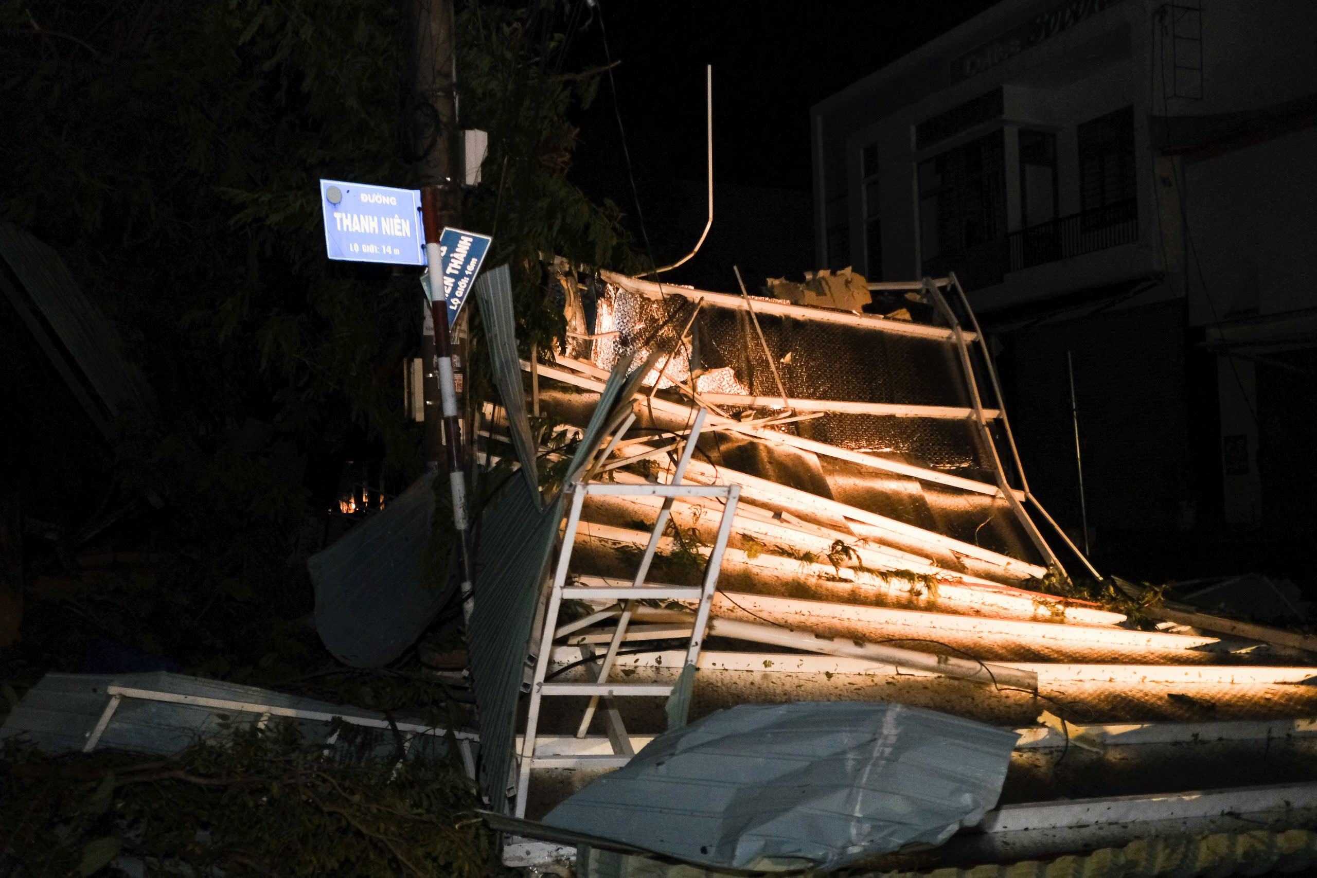 หลังคาเหล็กลูกฟูกของบ้านในเขต Quy Nhon จังหวัด Gia Lai พุ่งกระจายเต็มถนน - ภาพโดย: TAN LUC