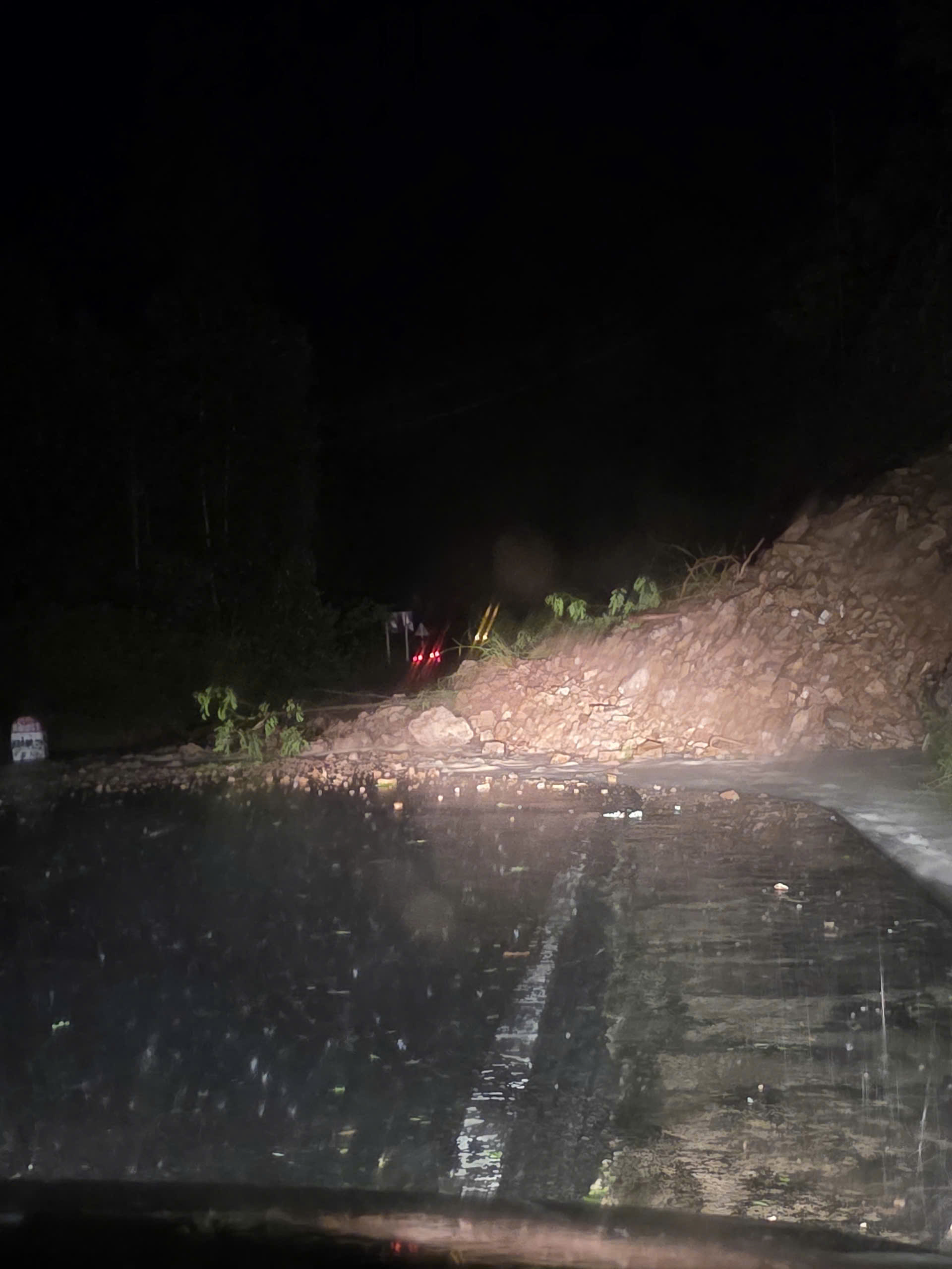 หินนับร้อยลูกบาศก์เมตรจากคันดินถล่มลงมาบนถนน ก่อให้เกิดอันตรายต่อการสัญจร